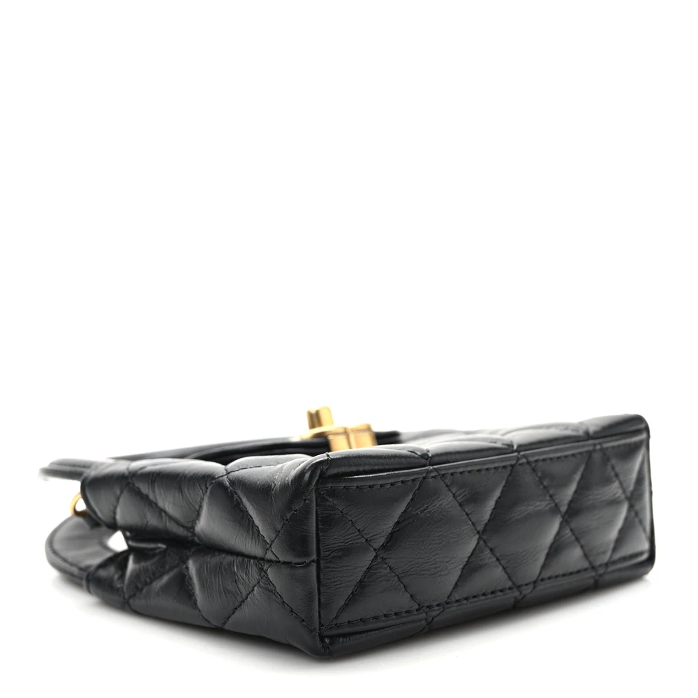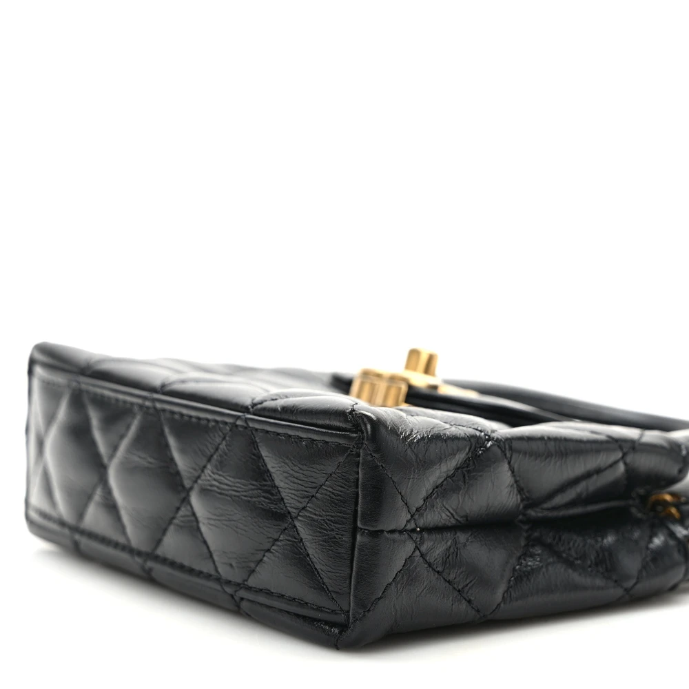 Chanel Kelly Shopper Nano Black Quilted Shiny Aged Calfskin Leather Gold Hardware – BAGS