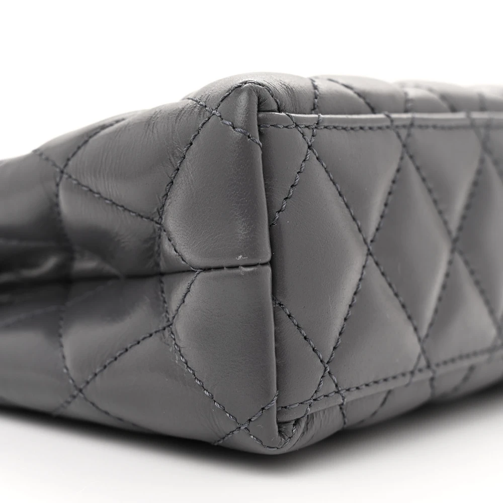 This Chanel Kelly Shopper Nano in Grey Quilted Shiny Aged Calfskin Leather with Aged Gold Hardware is a stylish and practical piece. The shiny aged calfskin leather features Chanel classic quilting, enhanced by aged gold hardware. Compact yet spacious, ideal for carrying daily essentials. The top handle and crossbody strap provide versatile carrying options. Its timeless design makes it suitable for any occasion. A chic choice for contemporary fashion.