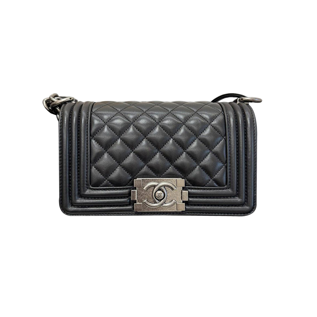• Chanel Lleboy Black Quilted Shiny Calfskin Leather / Quilted Caviar Leather Shoulder Bags Crossbody Bags