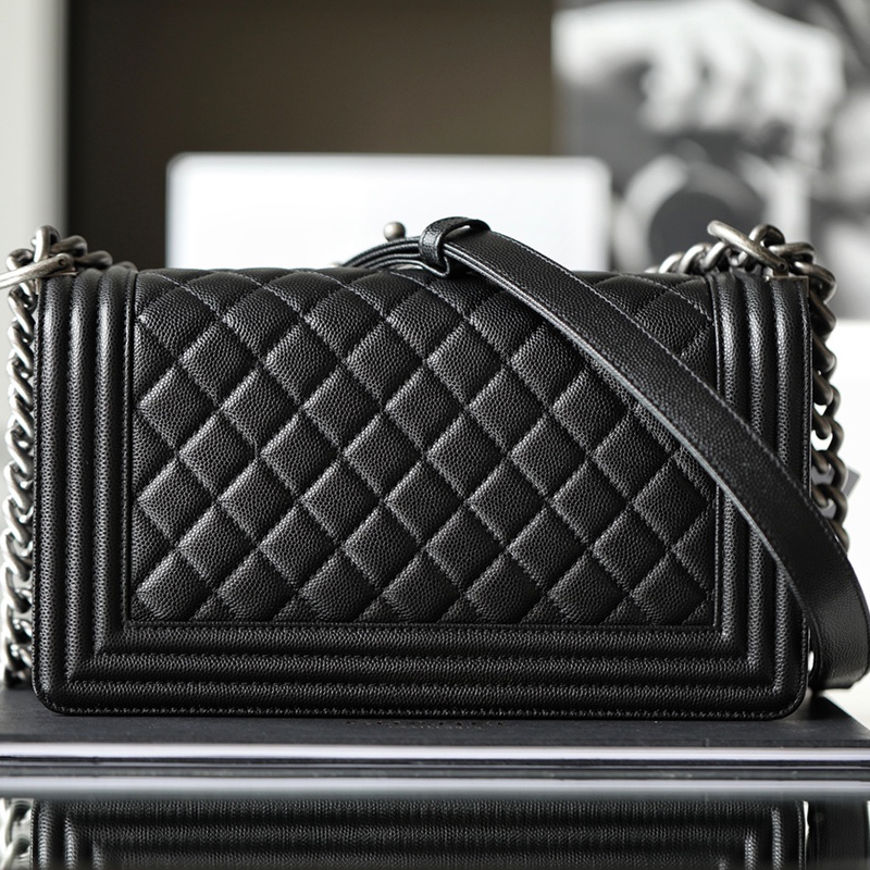• Chanel Lleboy Black Quilted Shiny Calfskin Leather / Quilted Caviar Leather Shoulder Bags Crossbody Bags