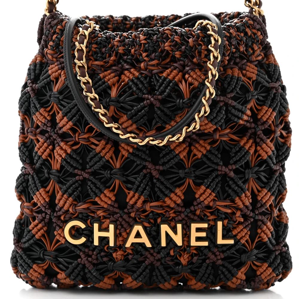 Chanel Mini Black / Light Brown / Burgundy Chanel 22 Calfskin Leather Macrame Aged Gold Hardware