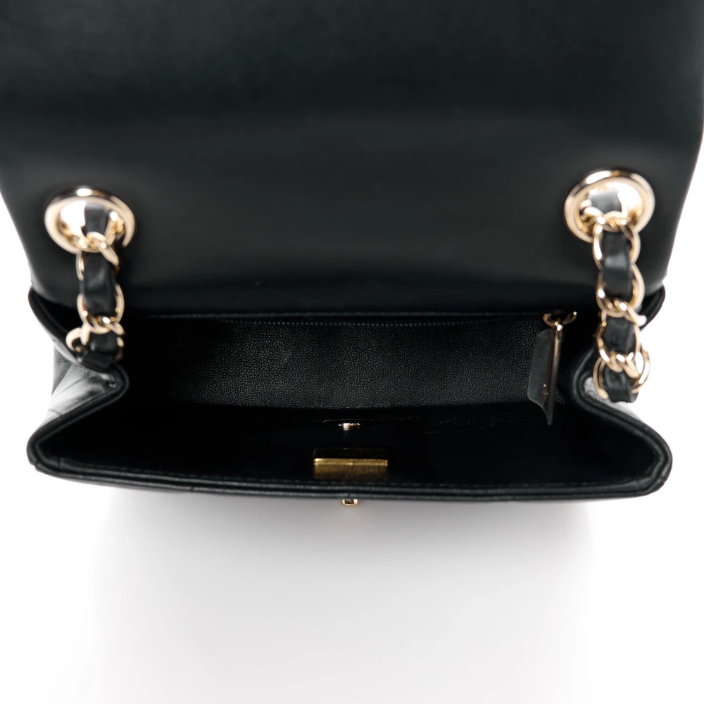 This Chanel Monacoco Flap Square Mini in Black Quilted Lambskin Leather with Resin Crystal and Gold Hardware is a luxurious statement piece. The soft lambskin leather and square silhouette exude elegance, while the resin crystal detail adds a touch of glamour. Gold hardware complements its refined design, making it perfect for evening events. Compact yet functional, ideal for carrying small essentials. The flap closure ensures security while maintaining a sleek profile. A stunning piece for special occasions.