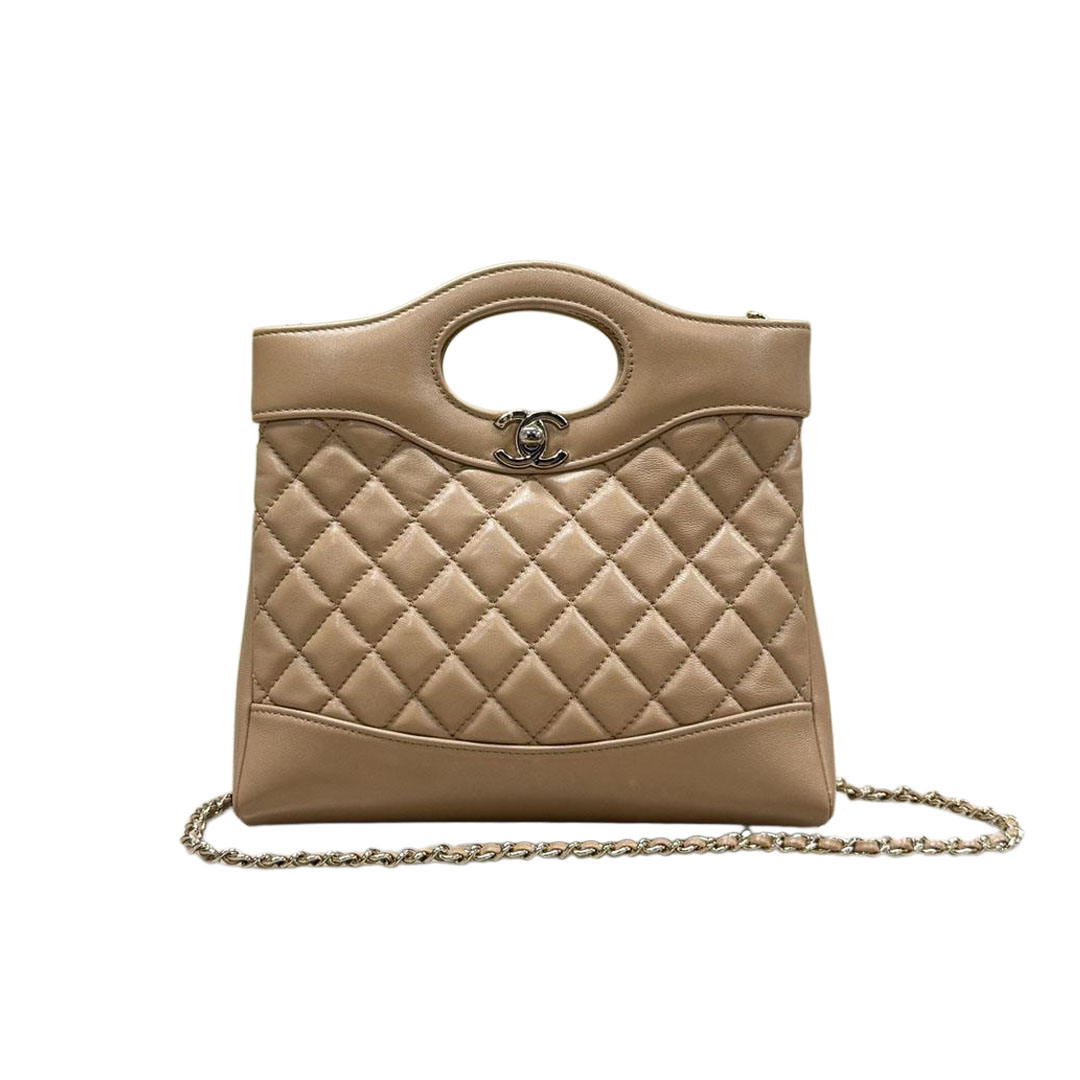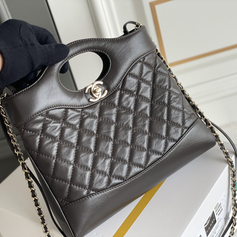 Chanel Oil Wax Leather Brown / Milk Tea Color / Grey Crossbody Bags