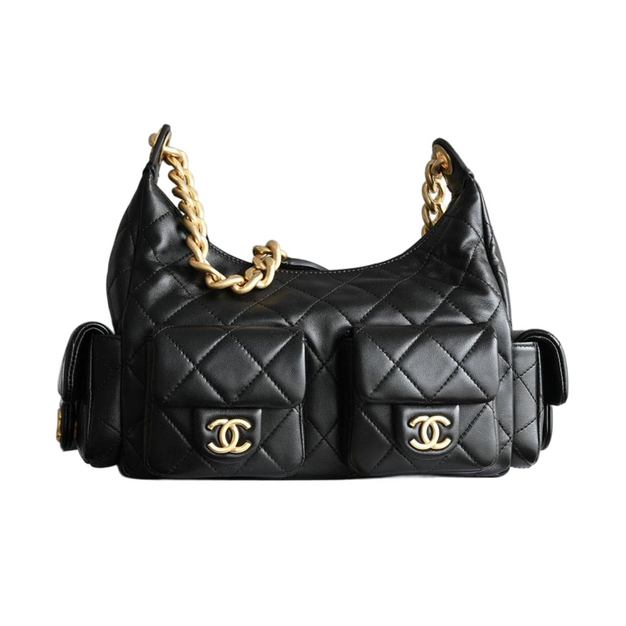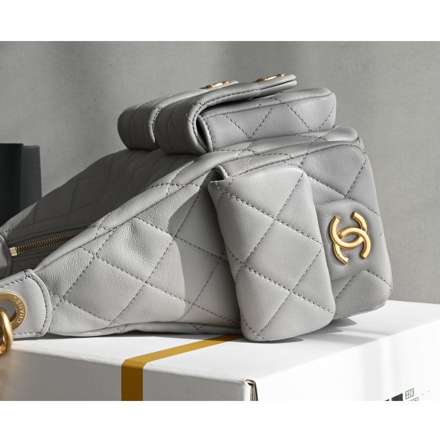 Chanel Quilted Lambskin Leather Grey /Black Shoulder Bags