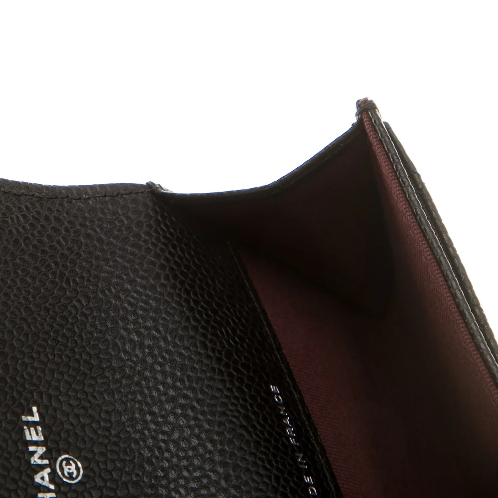 Chanel Small Interlocking CC Logo Wallet Black Quilted Leather Silver Hardware