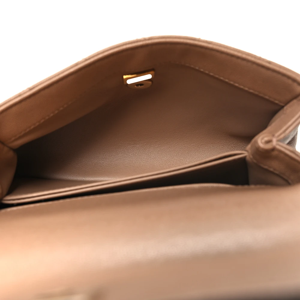 This Chanel Coco Handle Flap Mini in Brown Quilted Caviar Leather with Gold Hardware is a sophisticated and compact design. The durable caviar leather ensures longevity, while the quilted pattern adds a classic touch. Gold hardware complements the warm brown tone beautifully. The top handle adds a vintage-inspired detail. Perfect for carrying essentials,  versatile for any occasion. A timeless choice for Chanel collectors.