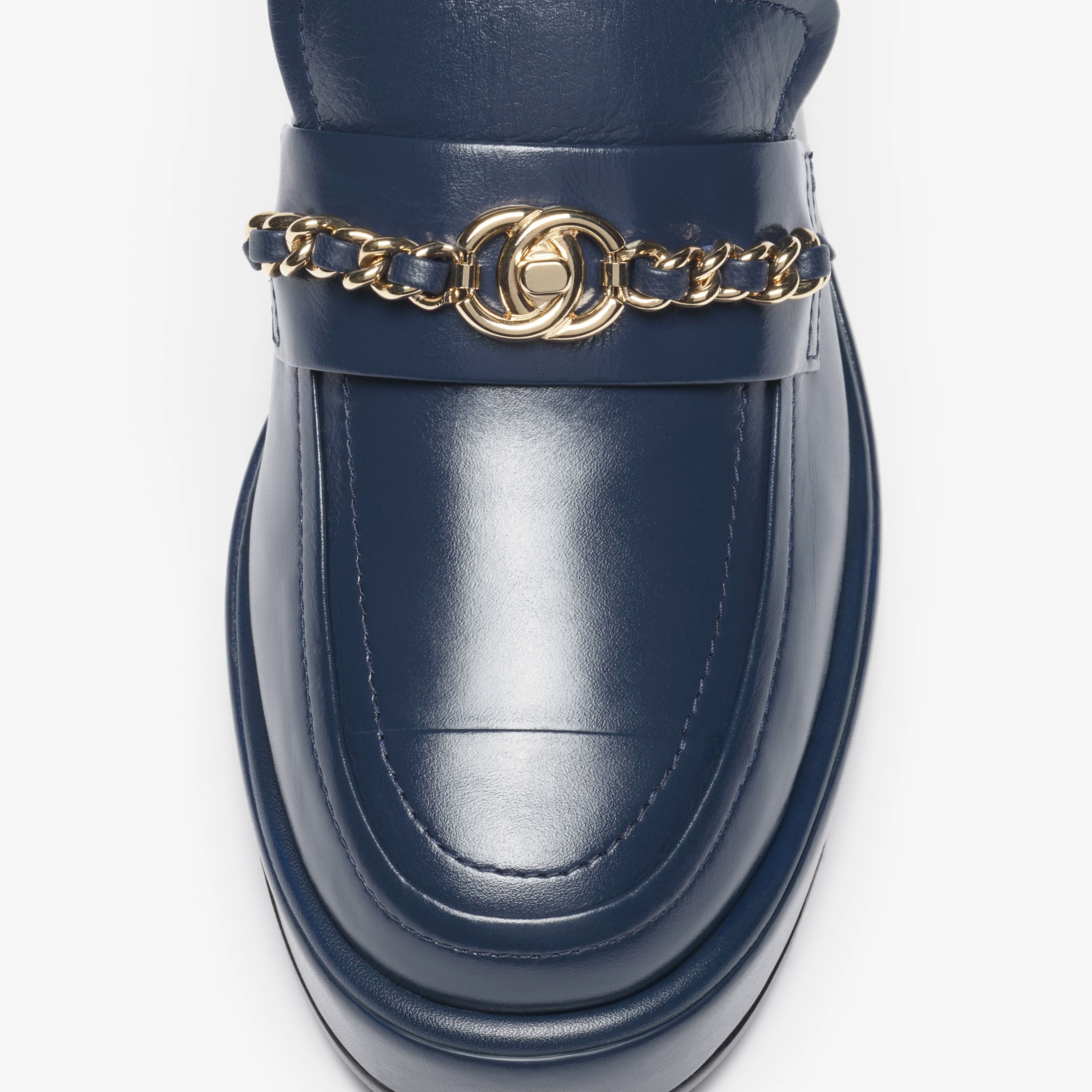 Chanel Black glossy calfskin, rhinestone and metal Loafers