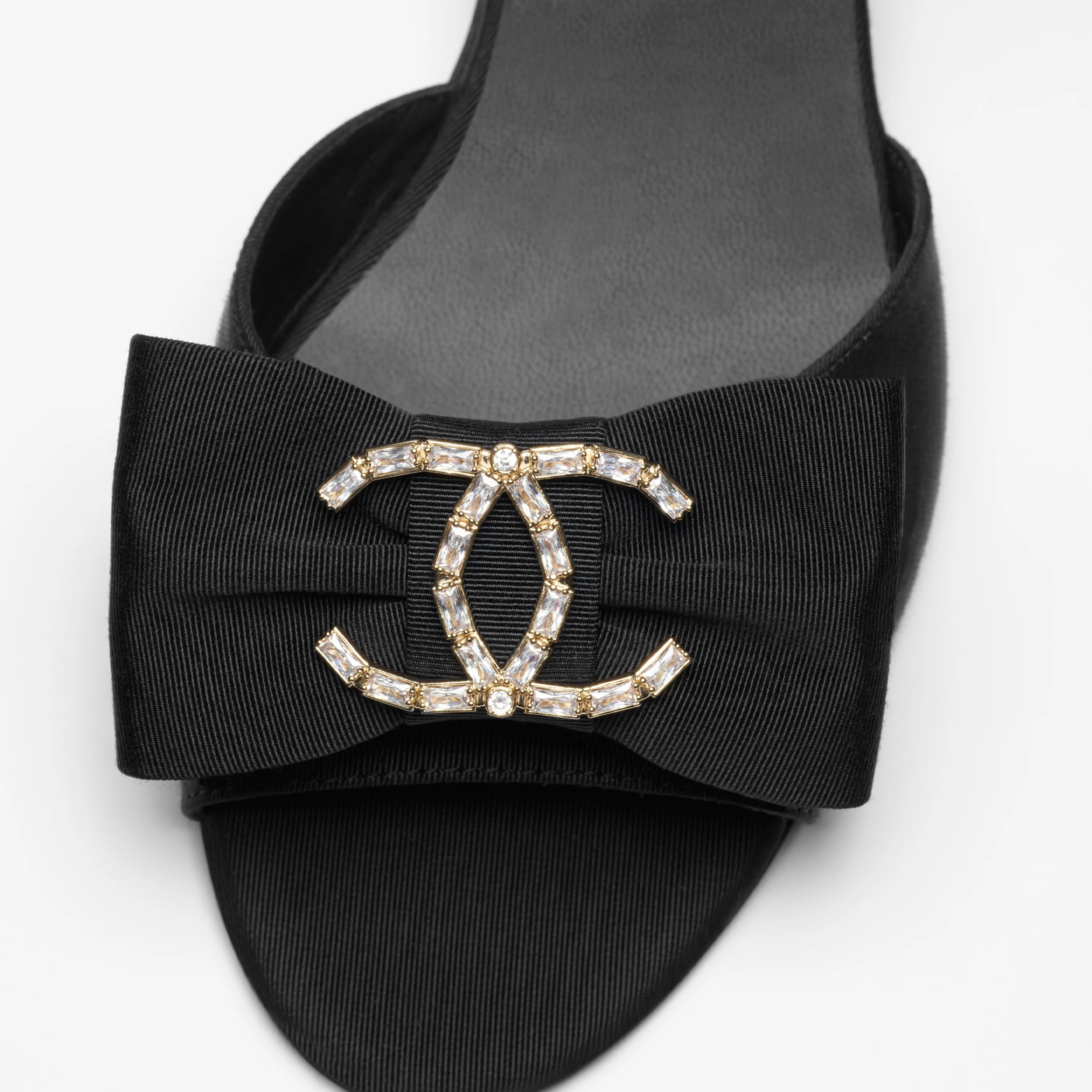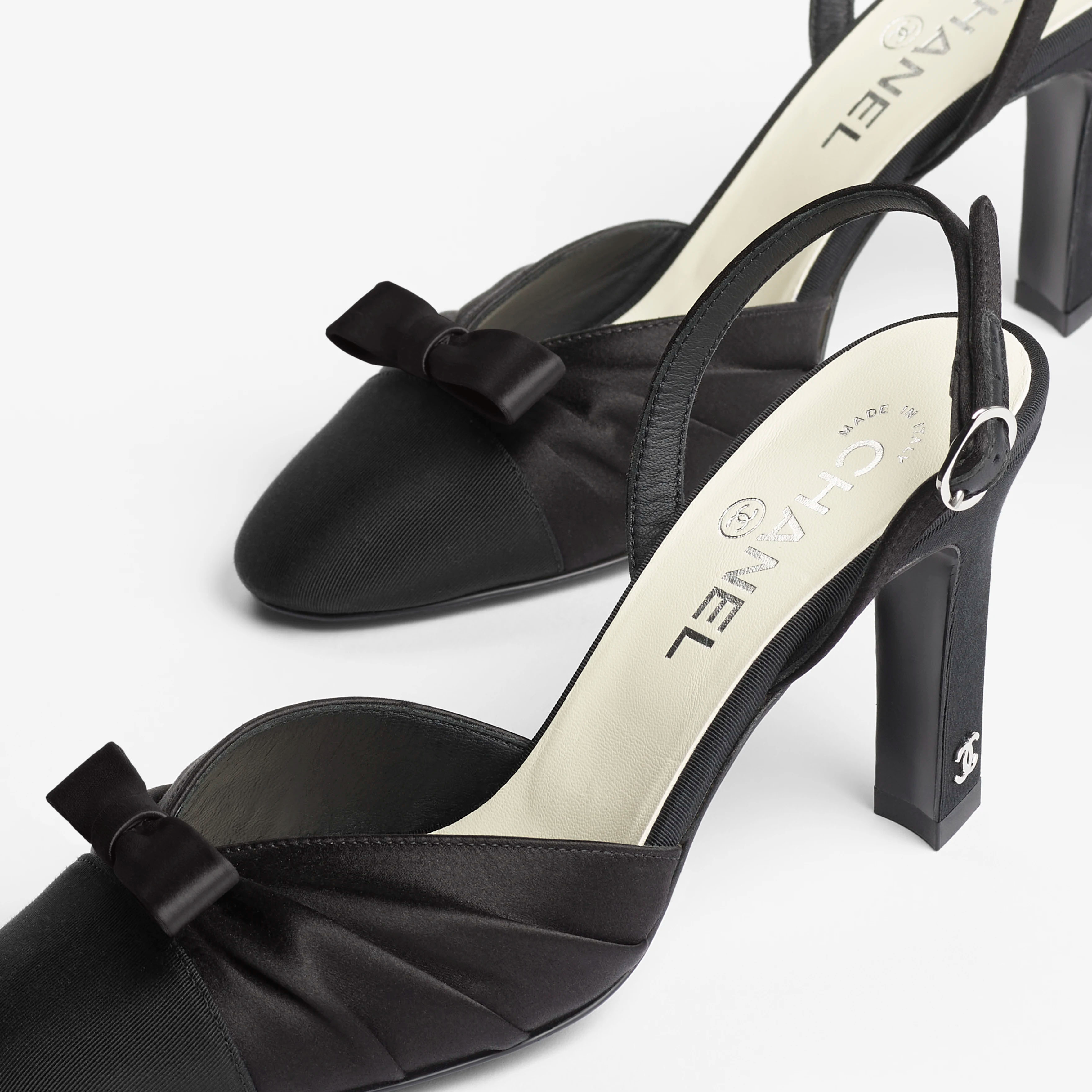 Chanel, Silk satin and grosgrain black Rear lace up high heels High Heels Sandal