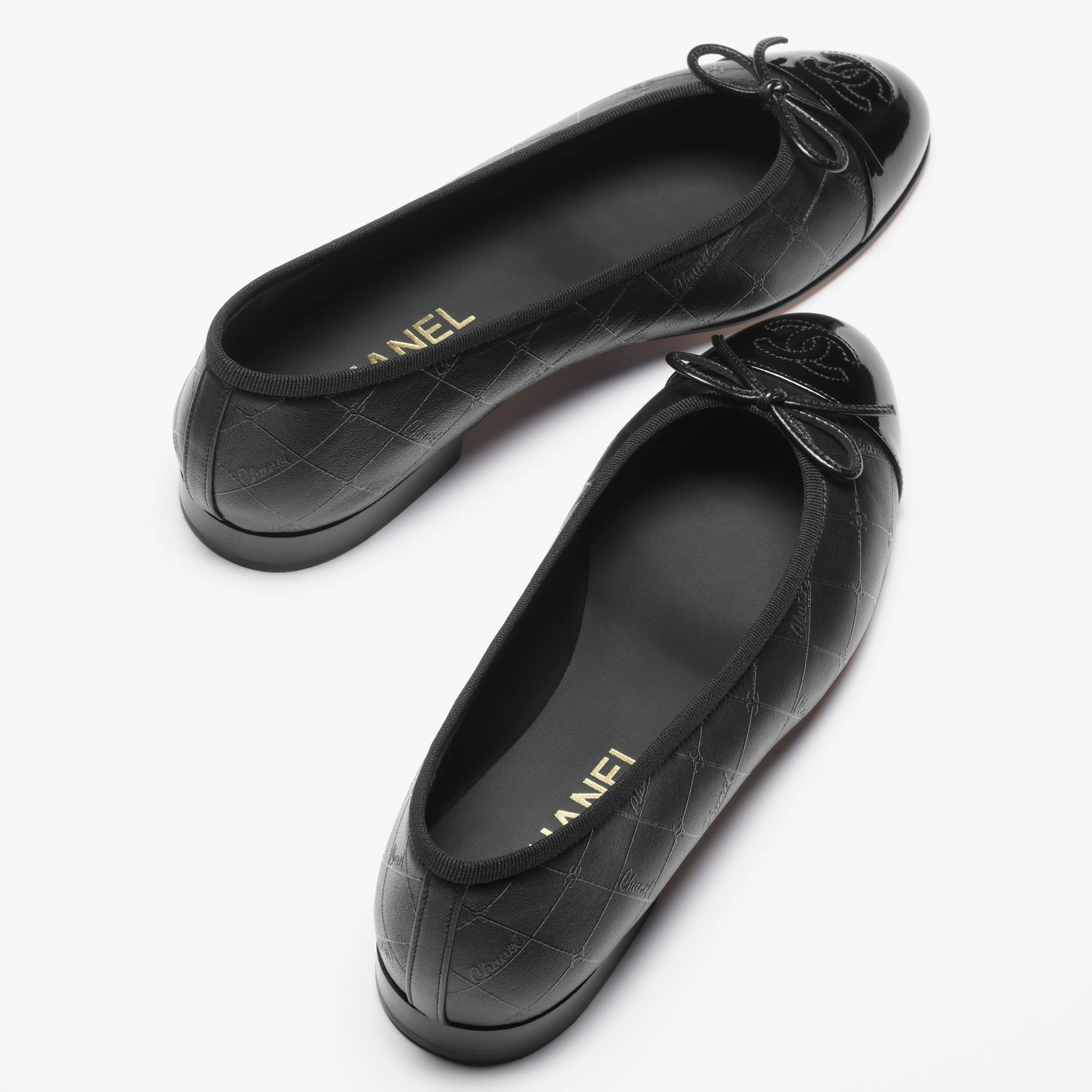 Chanel Printed flat shoes made of lambskin and calf patent leather in black Ballet Shoes
