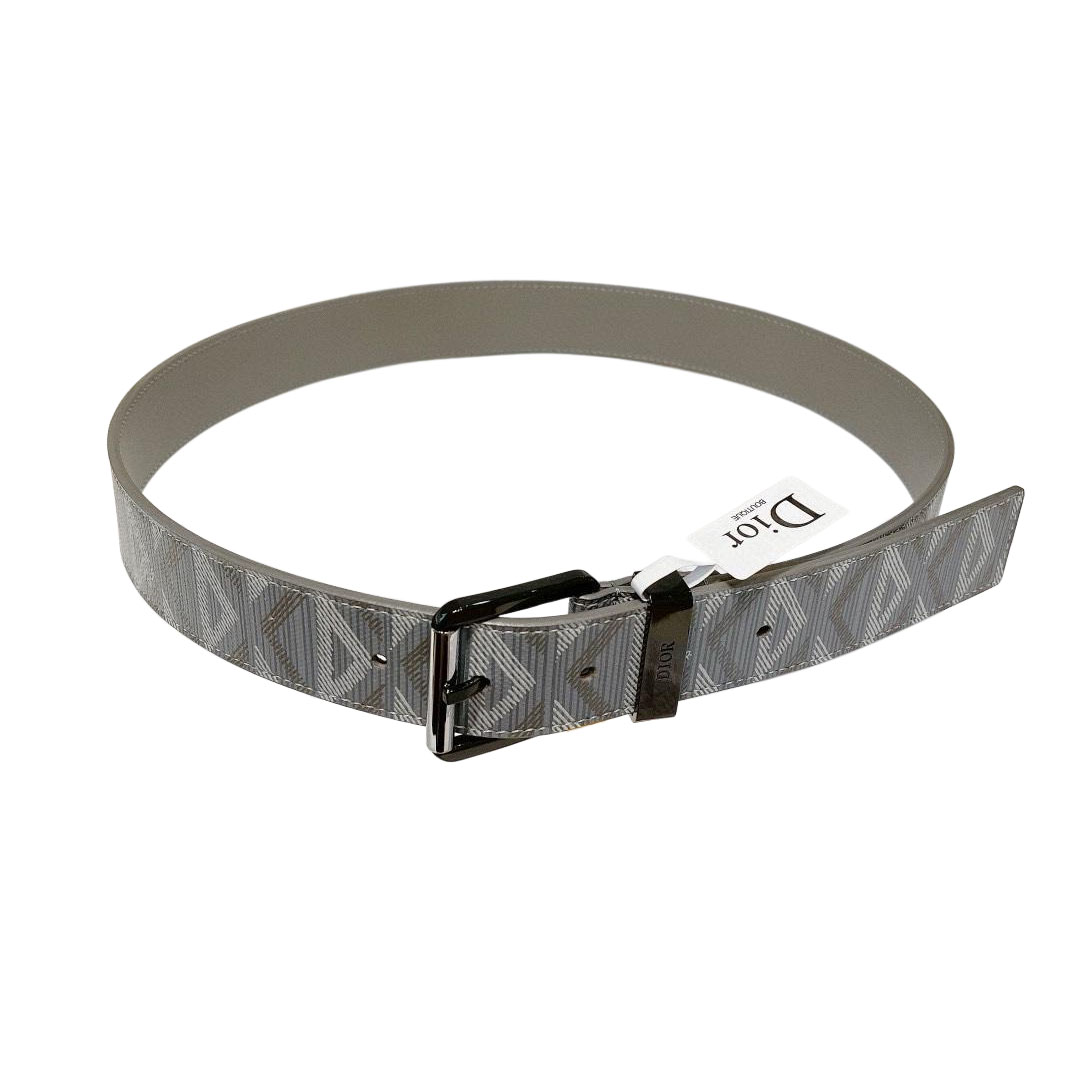 Dior Men’ s CD Buckle Belt In Grey/Black Diamond Canvas And Calfskin With Silver Hardware 40mm
