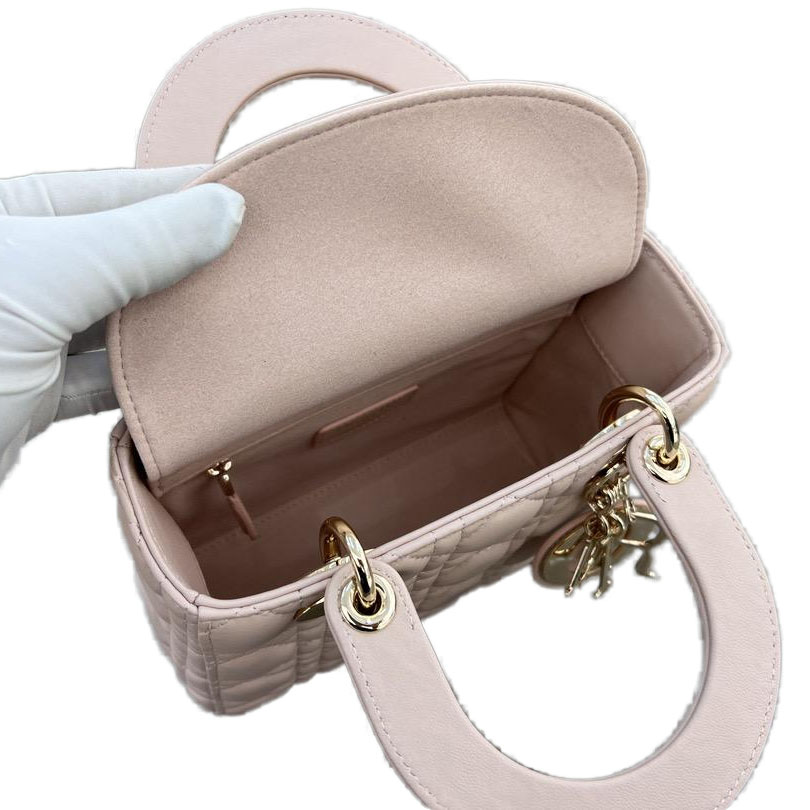 Dior Lady Pink Lambskin Leather Gold Hardware