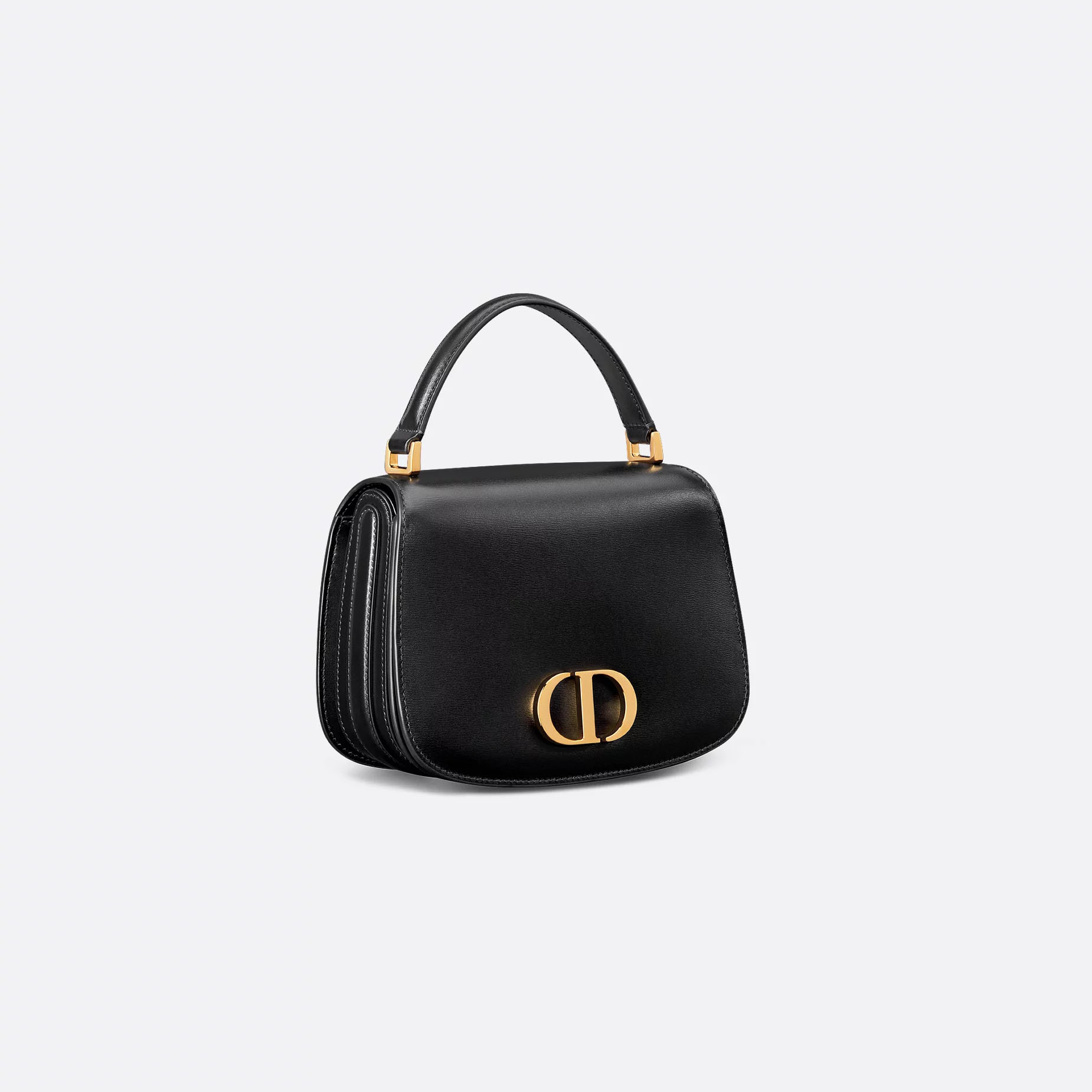 The 30 Montaigne Avenue Top Handle bag stands out with a streamlined silhouette and modern, refined aesthetic. Showcasing House savoir-faire, the style is made in a luxurious and durable black calfskin defined by its finely ribbed texture. The design features a flap adorned with the CD signature in antique gold-finish metal which opens to a double gusset compartment, while the rear slip pocket enhances its practicality. The leather top handle and adjustable, removable strap allow the small bag to be carried by hand, worn over the shoulder or crossbody.