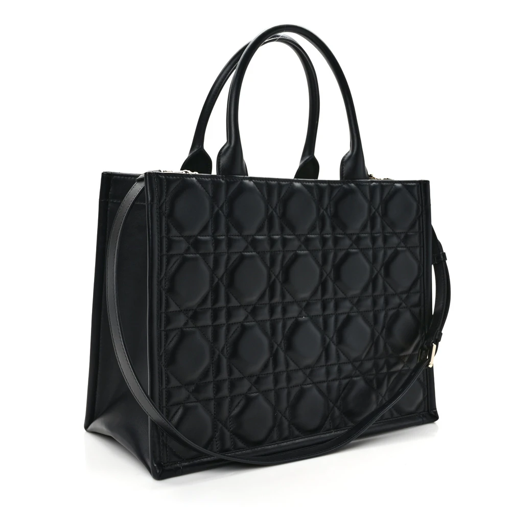 Dior Medium Book Tote Black Macrocannage Calfskin Leather Gold Hardware