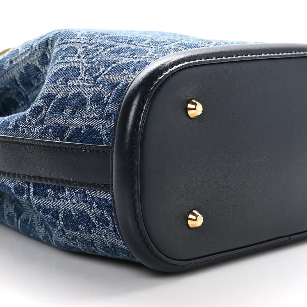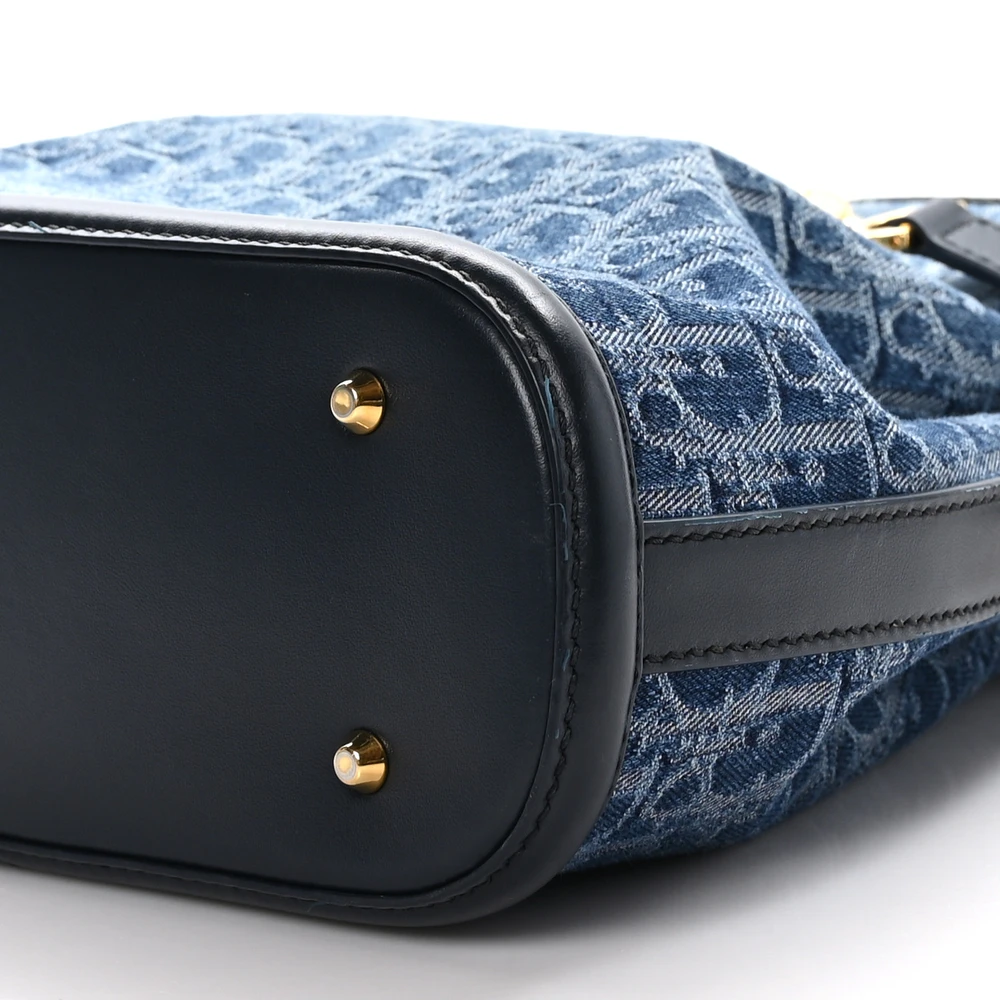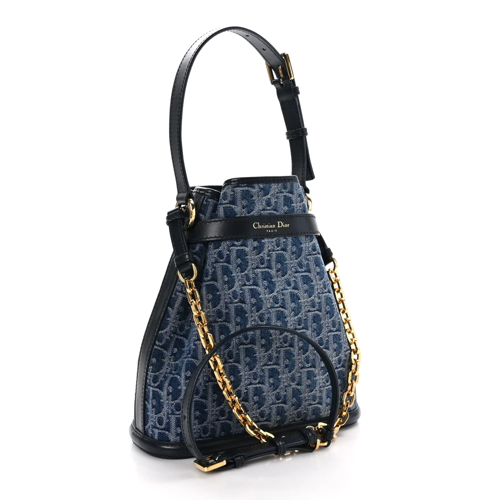 Dior Medium C’est Chain Bucket Bag Blue Oblique Canvas Gold Hardware