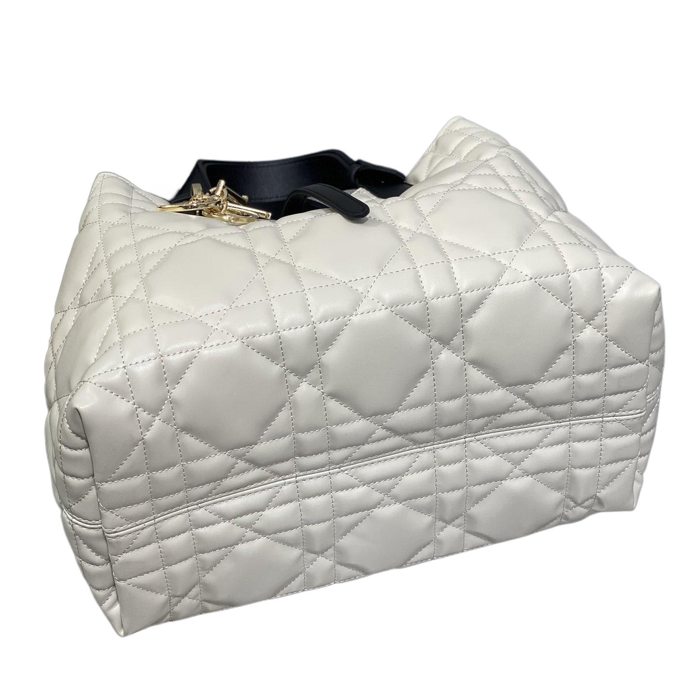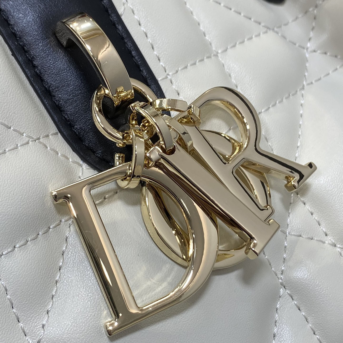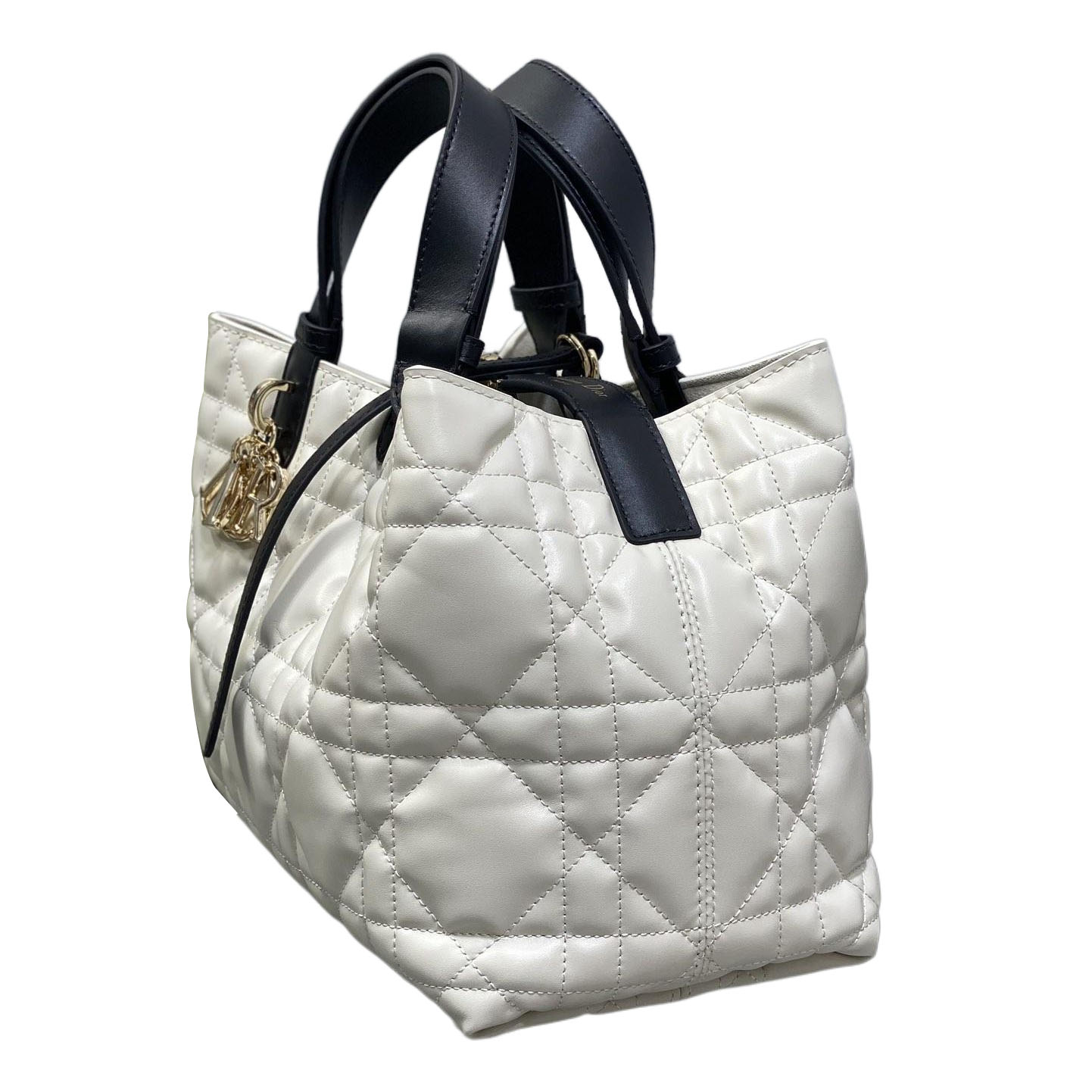 Dior Medium Dior Toujours Bag In White And Black Macrocannage Calfskin With Light Gold Hardware