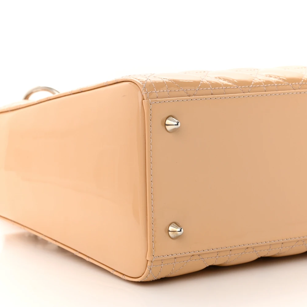 Dior Medium Lady Dior Rose Clair Patent Cannage Calfskin Leather Silver Hardware