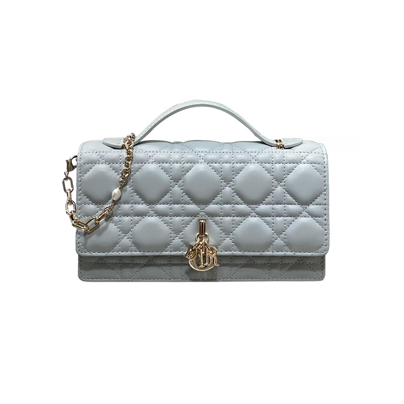 • Dior My Dior Mini Top Handle Bag With Chain And Pearl In Blue Haze/Ice Blue/Beige/White/Chocolate/Black/Red/Rose des Vents/Pink/Stone Grey/Light Grey Cannage Lambskin With Gold Hardware