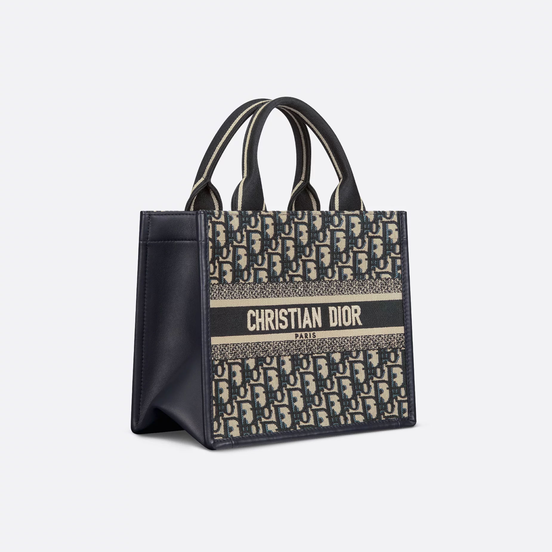 Maria Grazia Chiuri’s hallmark Dior Book Tote is offered in an elegant variation. The refined style combines blue calfskin with a tonal Dior Oblique embroidery. Designed to keep all daily essentials organized, the interior is equipped with a zip pocket and slip pockets. Featuring an embroidered adjustable, removable strap, the practical small tote exemplifies Dior’s savoir-faire and can be carried by hand or worn over the shoulder.