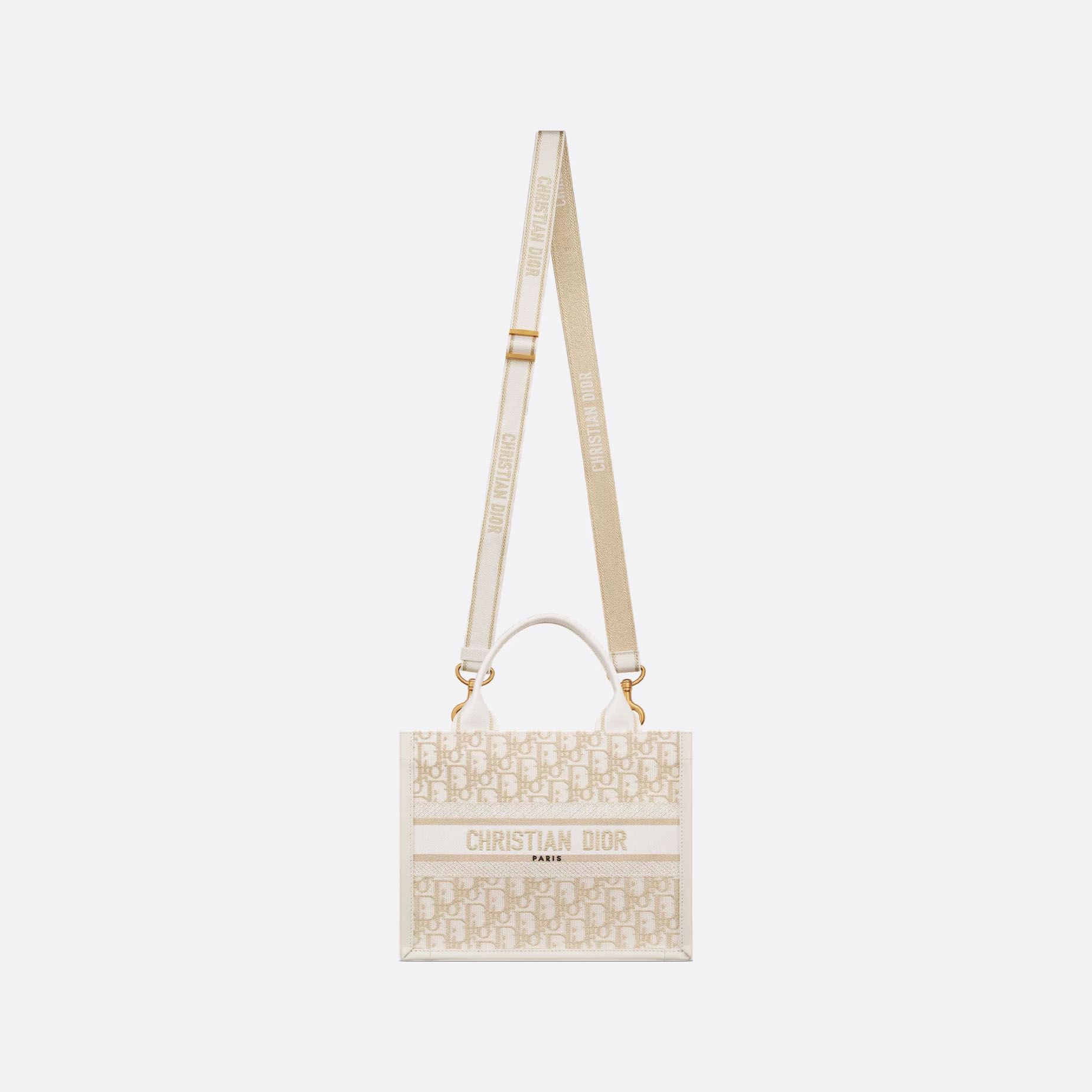 Maria Grazia Chiuri’s hallmark Dior Book Tote is presented in an elegant new variation. The refined style combines natural calfskin with a tonal Dior Oblique motif embroidery. Designed to keep all the daily essentials organized, the interior is equipped with a zip pocket and slip pockets. Featuring an embroidered adjustable, removable strap, the practical small tote exemplifies Dior’s savoir-faire and can be carried by hand or worn over the shoulder.