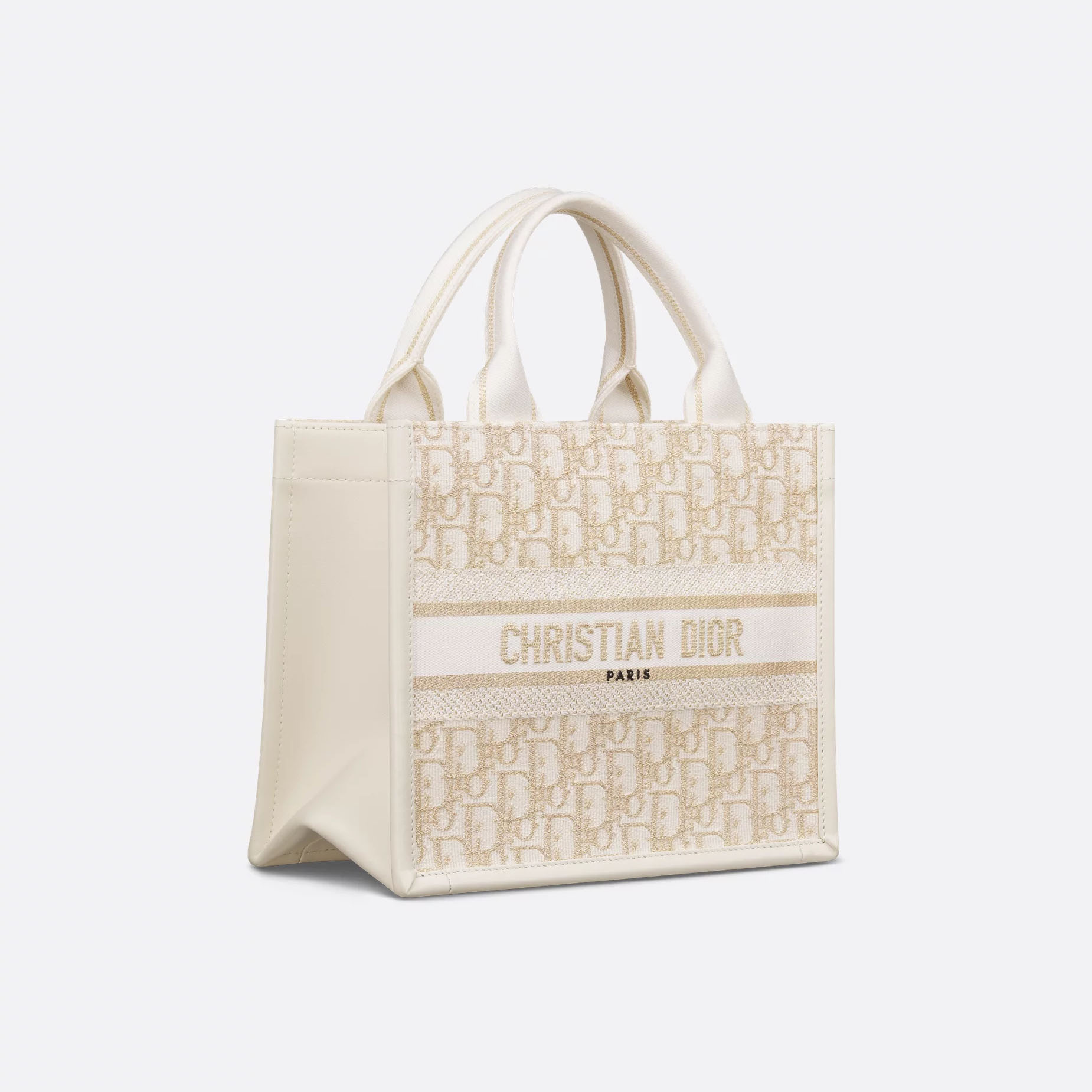 Dior Small Dior Book Tote In Natural Dior Oblique Embroidery And Calfskin Gold Hardware