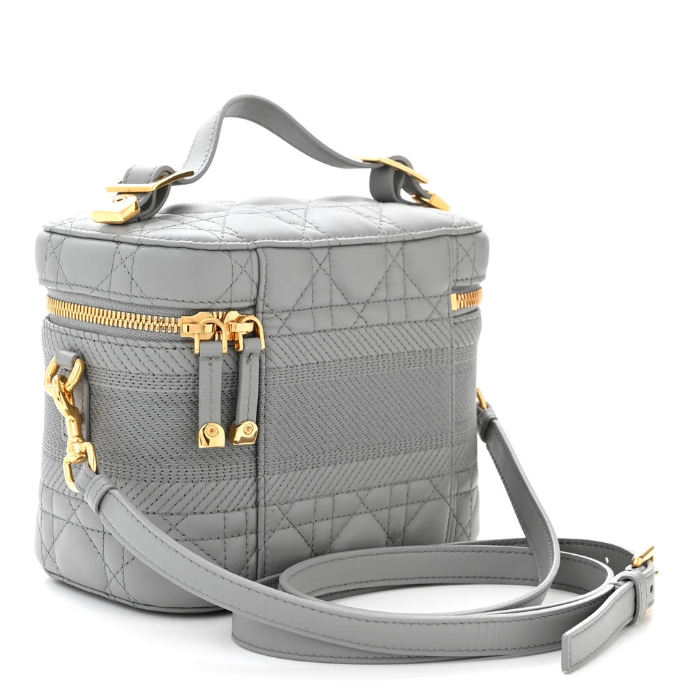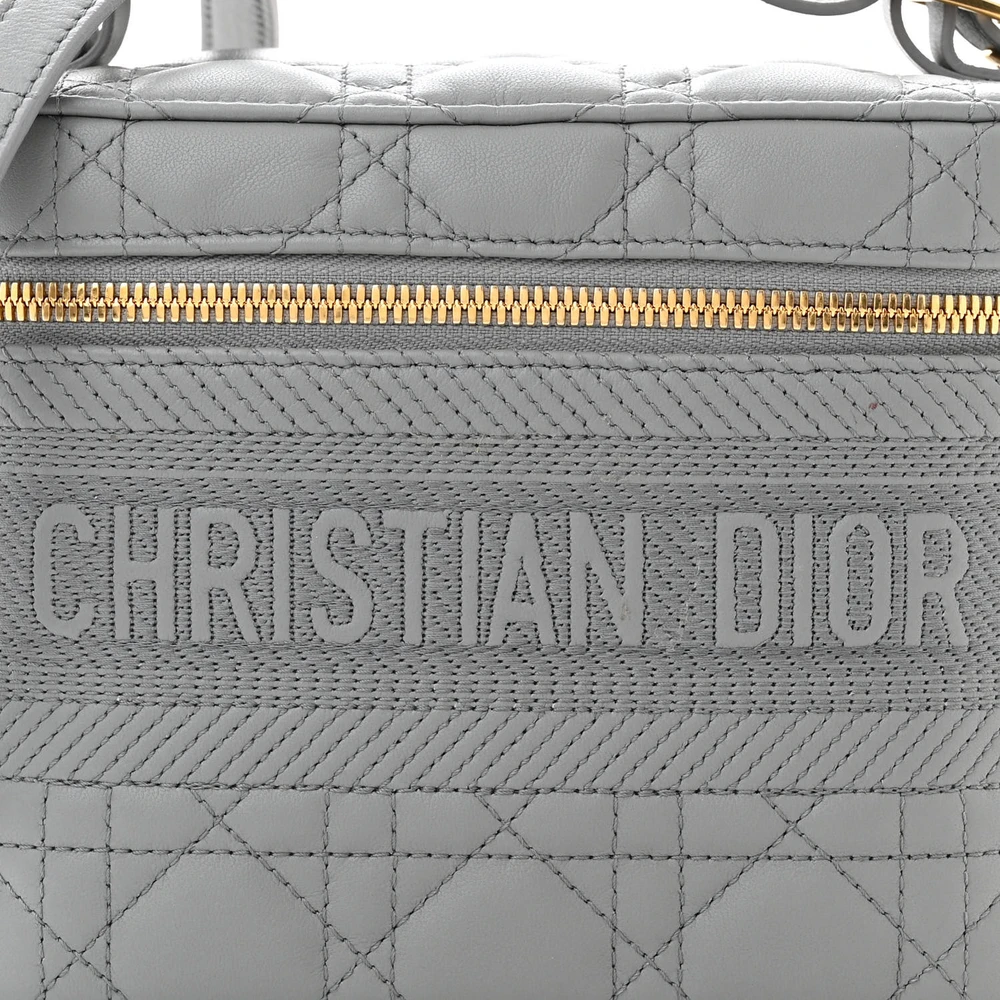 Dior Small DiorTravel Vanity Case Grey Cannage Lambskin Leather Gold Hardware