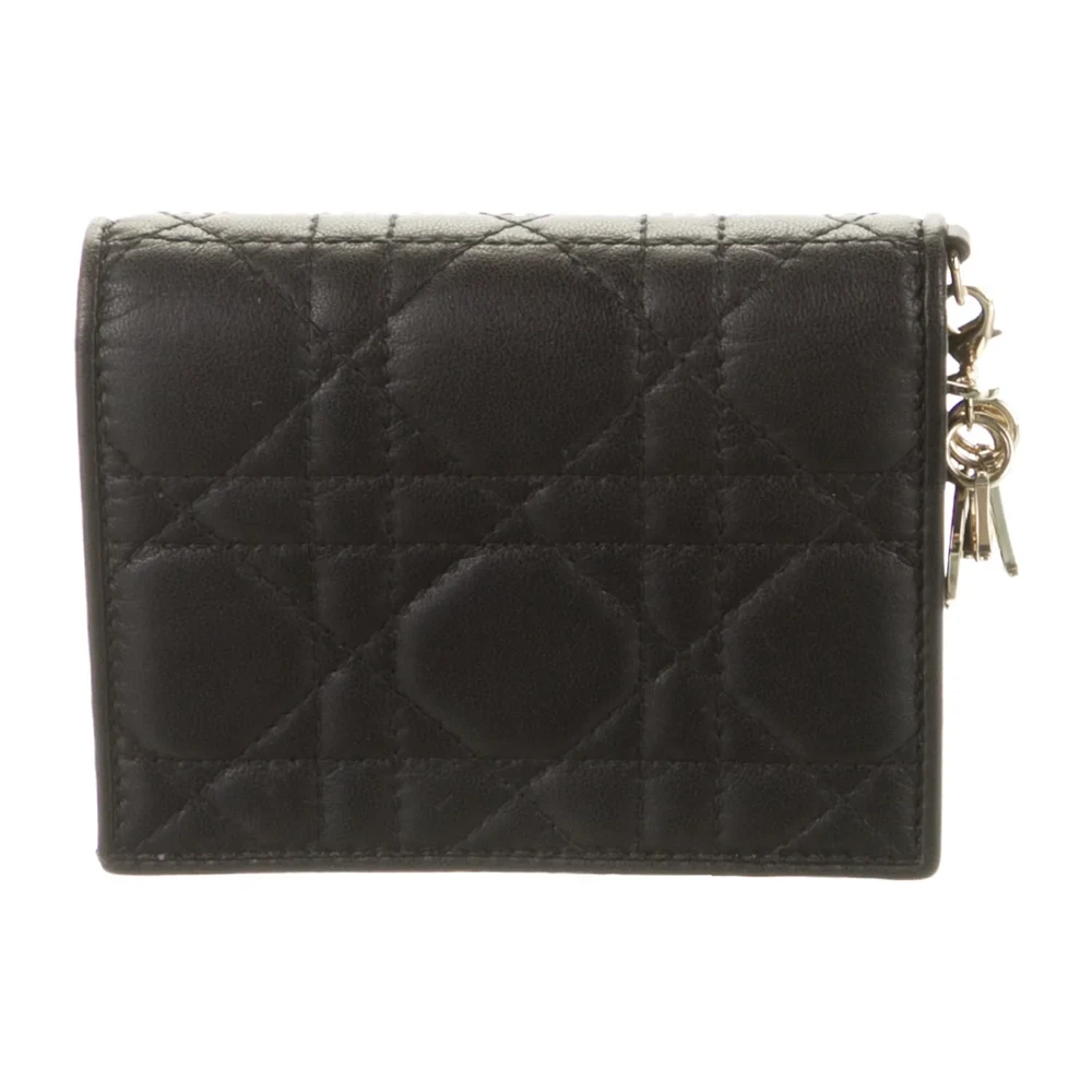 Dior Small Mini Lady Dior Compact Wallet Black Cannage Pattern Leather Gold Hardware