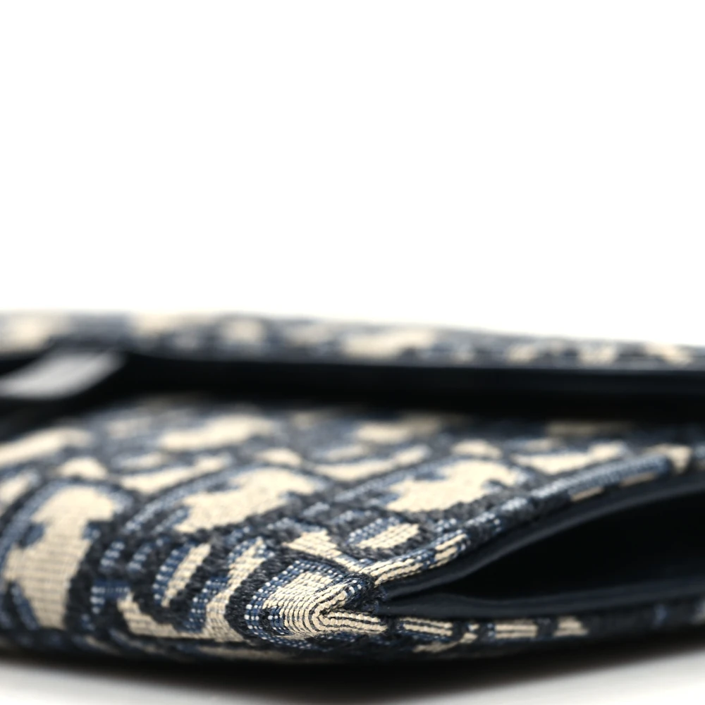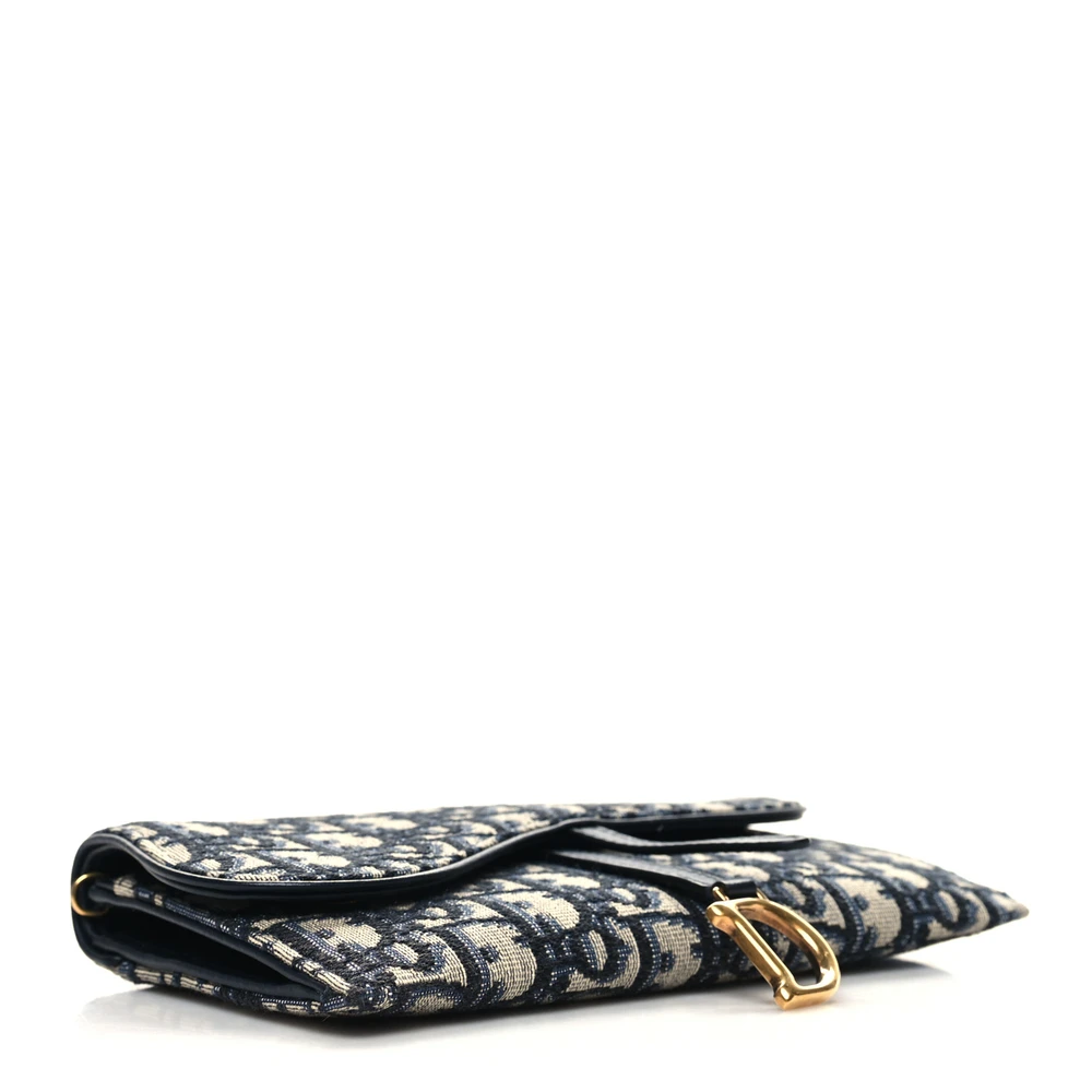 Dior Small Saddle Long Wallet With Chain Blue Oblique Canvas Brass Hardware