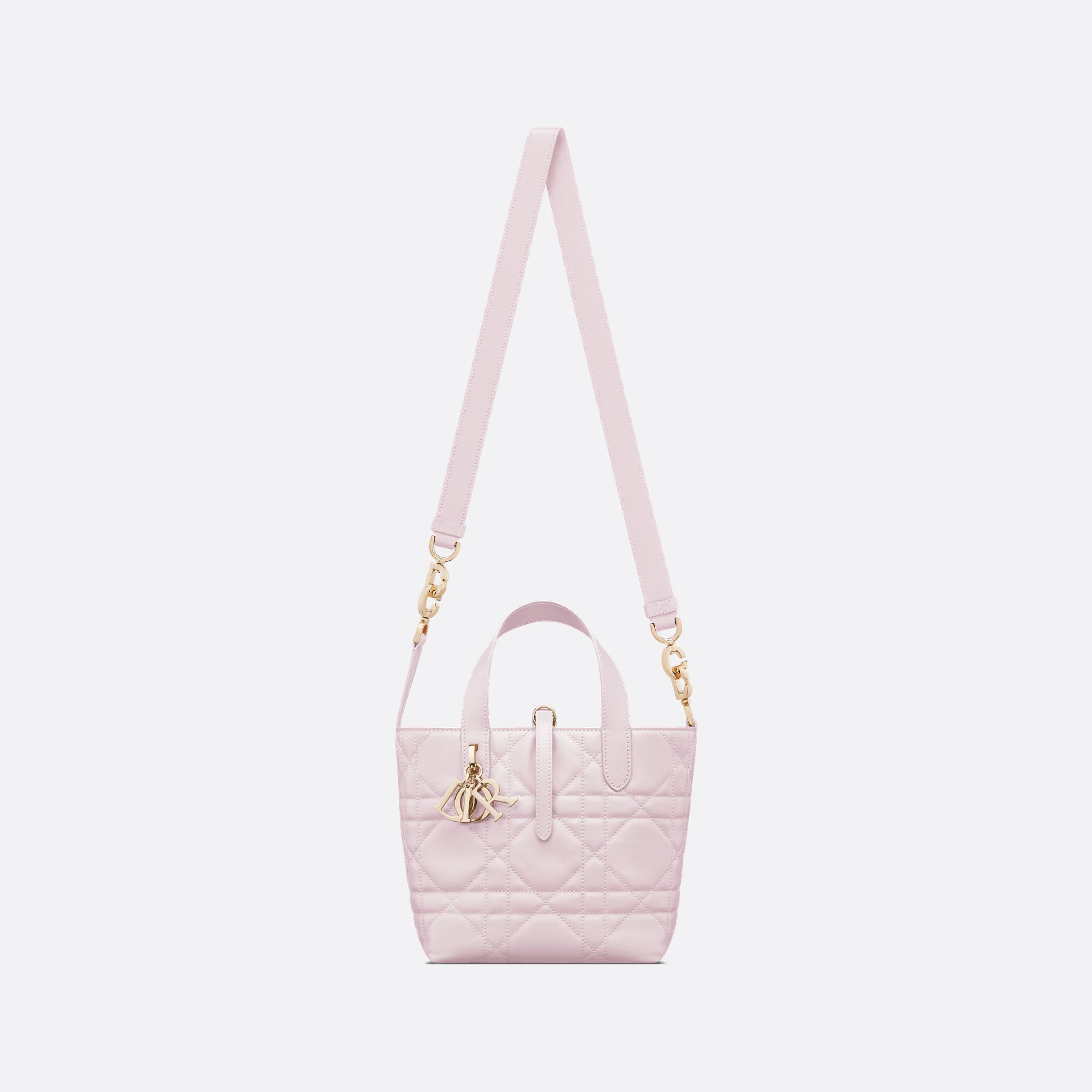 • Dior Toujours Vertical Nano Tote Bag In Light Pink/Black/White/Beige Crossbody Bags Calfskin Leather Top-Handle Bags