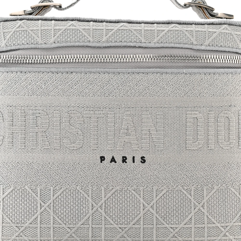 Dior Small DiorTravel Vanity Case Grey Cannage Embroidered Canvas Silver Hardware