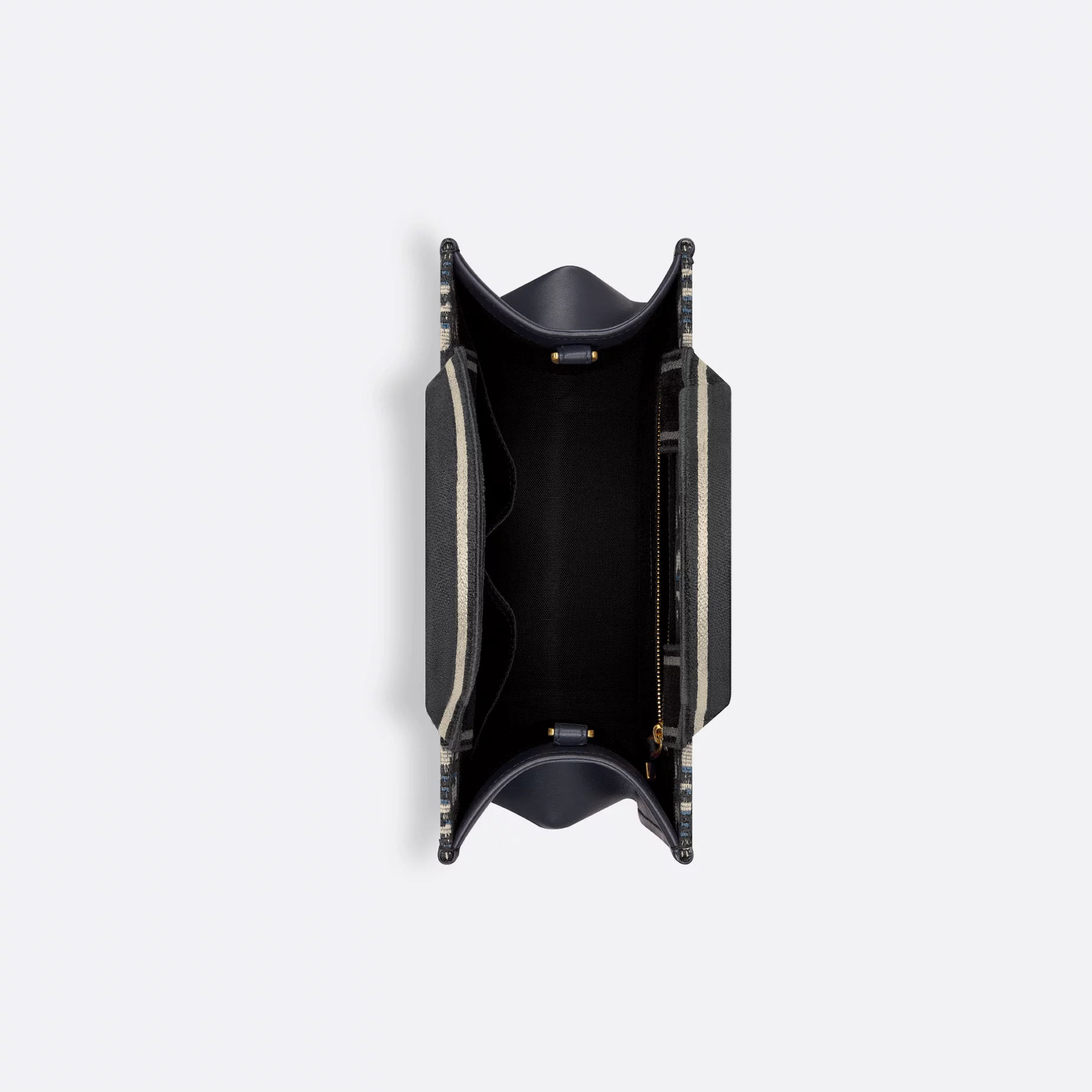 Dior Small Dior Book Tote In Blue Dior Oblique Embroidery Canvas and Calfskin Gold Hardware