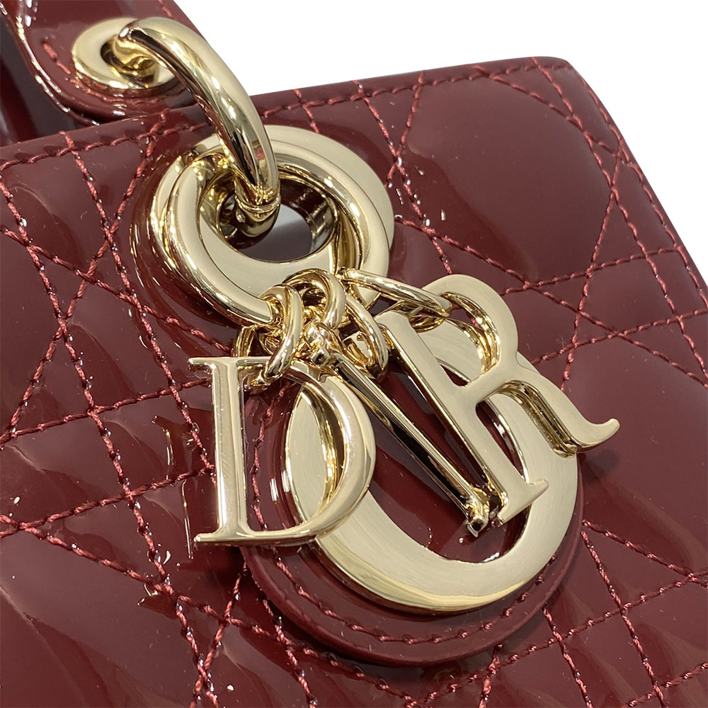 Dior Small Lady D-Joy Bag In Cherry Red Patent Calfskin/White Lambskin/Black Ultramatte Cannage Calfskin With Gold/Black Hardware