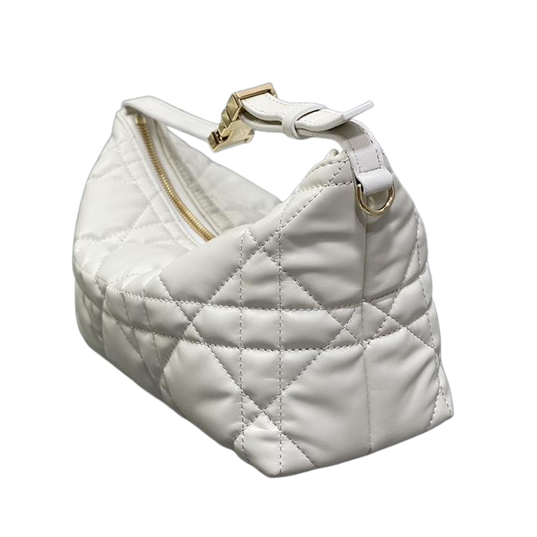 Dior Small D-Journey Bag in White Macrocannage Lambskin Gold Hardware