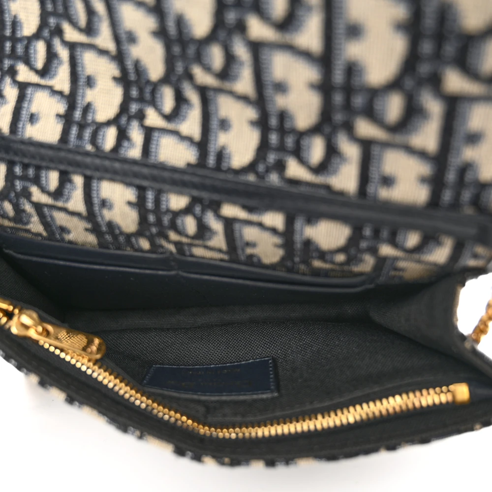 Dior Small Compact Wallet Blue Oblique Jacquard Saddle Card Holder Gold Hardware