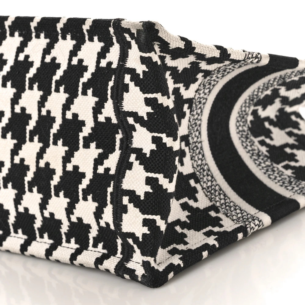 Dior Small Book Tote Black/White Houndstooth Embroidered Canvas