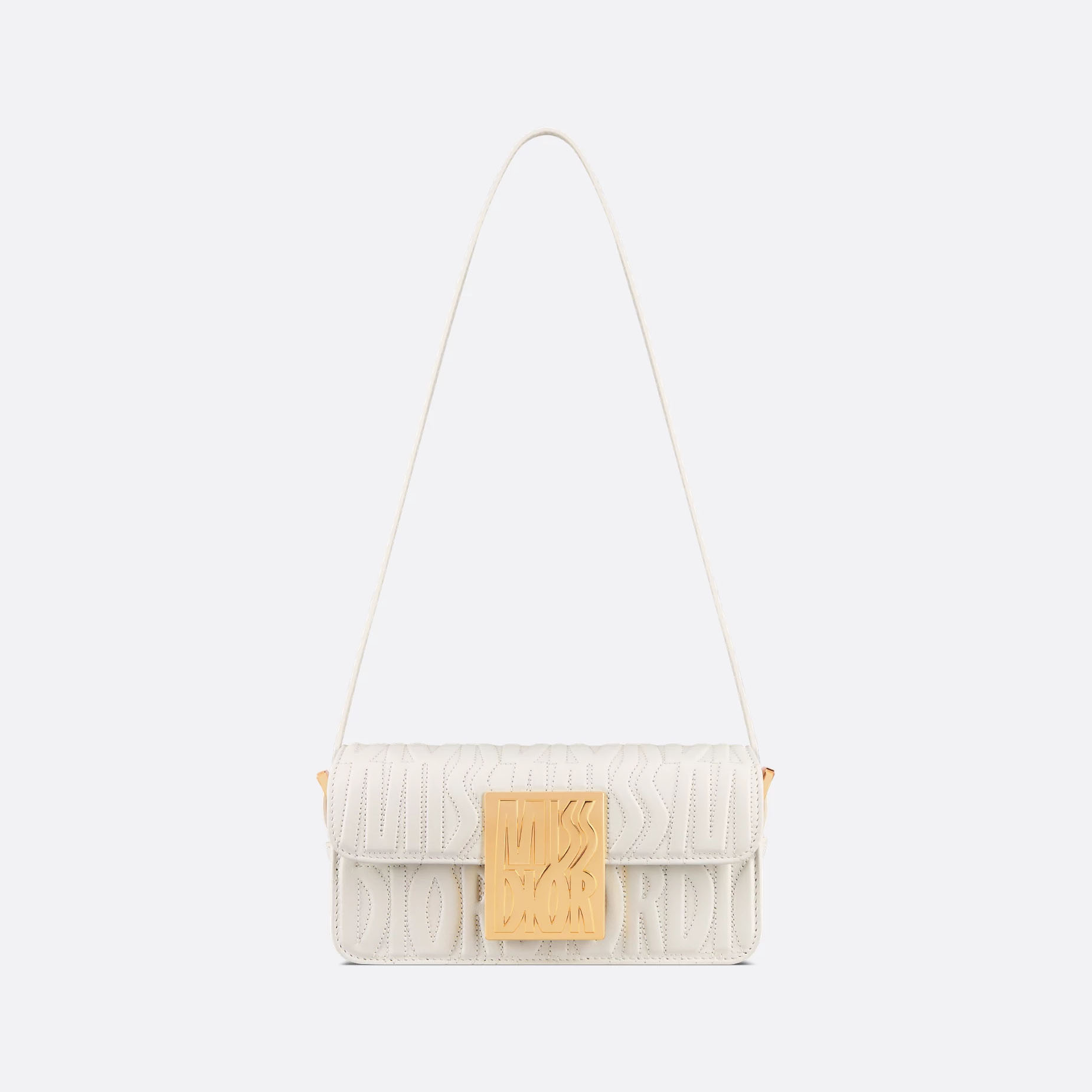 Dior Miss Dior Flap Bag In White Quilted Miss Dior Allover Calfskin With Gold Hardware