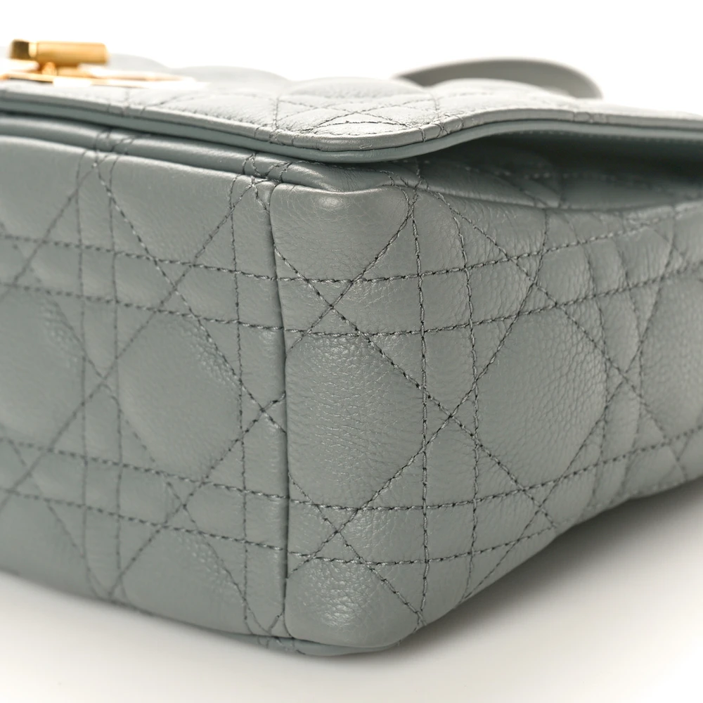 Dior Medium Caro Bag Ethereal Grey Cannage Calfskin Leather Gold Hardware