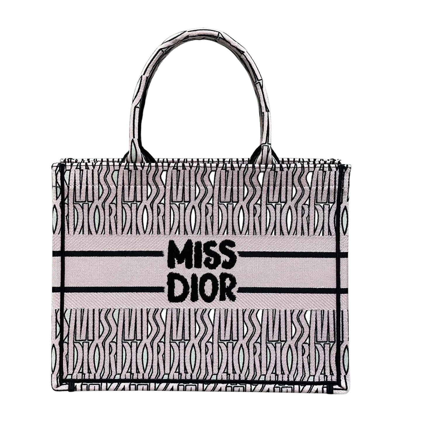 Dior Medium Dior Book Tote Beige And Black Miss Dior Graffiti Embroidery