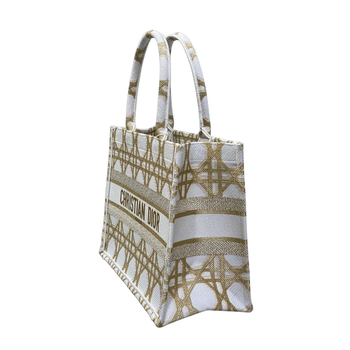 Dior Medium Dior Book Tote Gold-Tone and White Macrocannage Embroidered Canvas