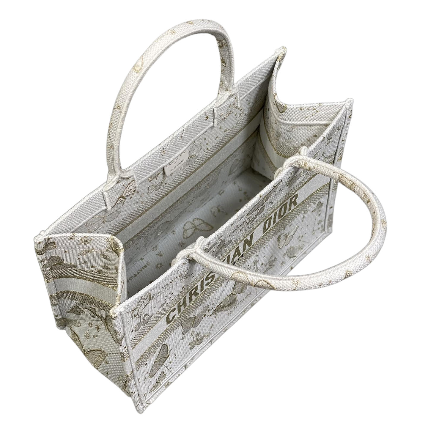 Dior Medium Dior Book Tote Gold-Tone and White Butterfly Zodiac Embroidery