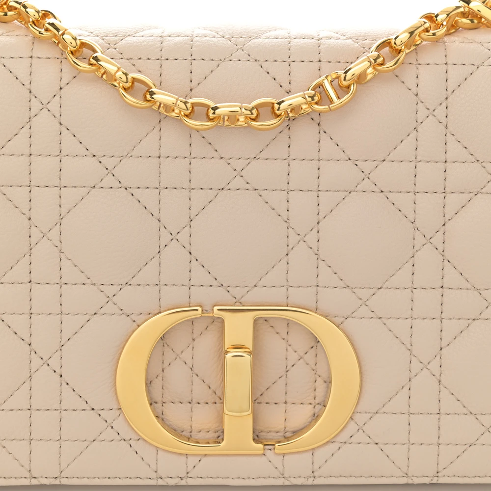 Dior Medium Caro Bag Beige Supple Cannage Calfskin Leather Gold Hardware