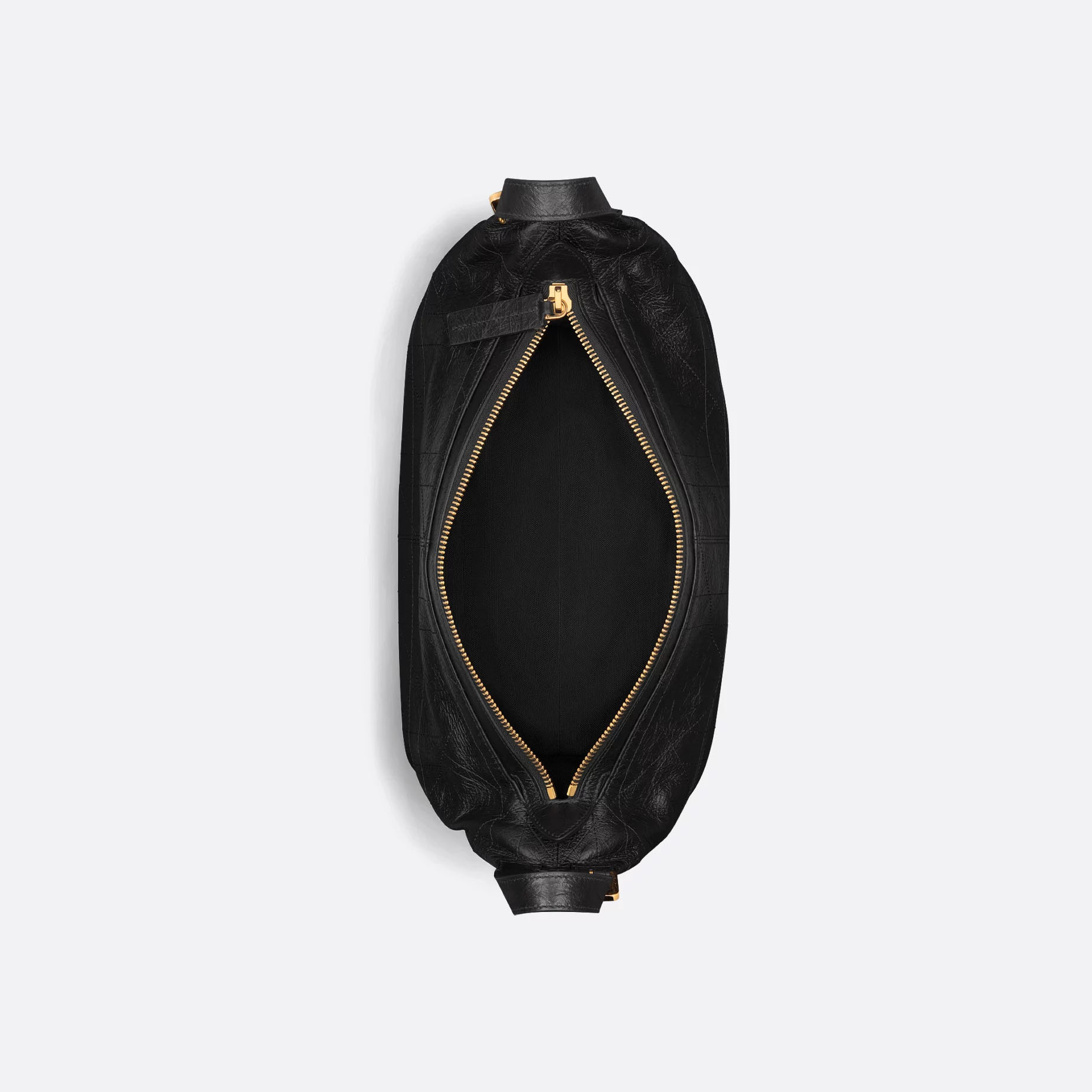 Dior Medium D-Journey Bag in Black Crinkled Calfskin Gold Hardware