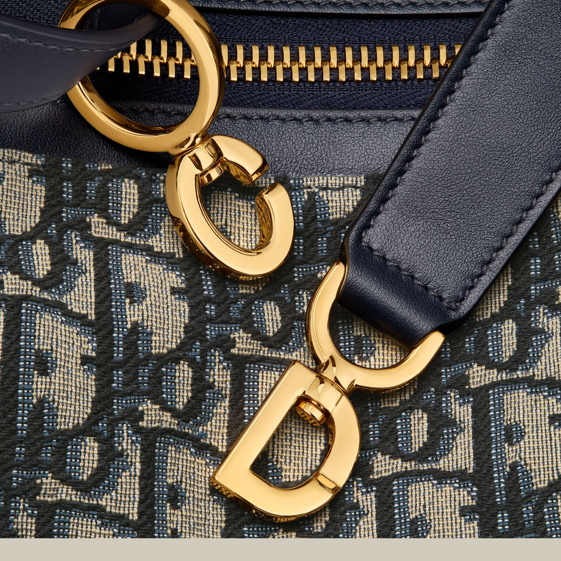 Dior Medium C’est Dior Bag In Black CD-Embossed Calfskin/Blue Dior Oblique Jacquard With Gold Hardware
