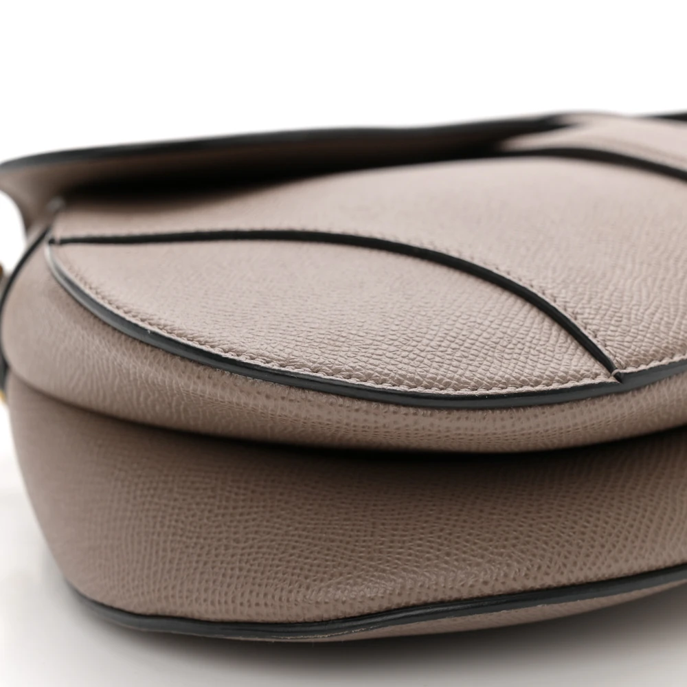 Dior Medium Saddle Bag Warm Taupe Grained Calfskin Leather Gold Hardware