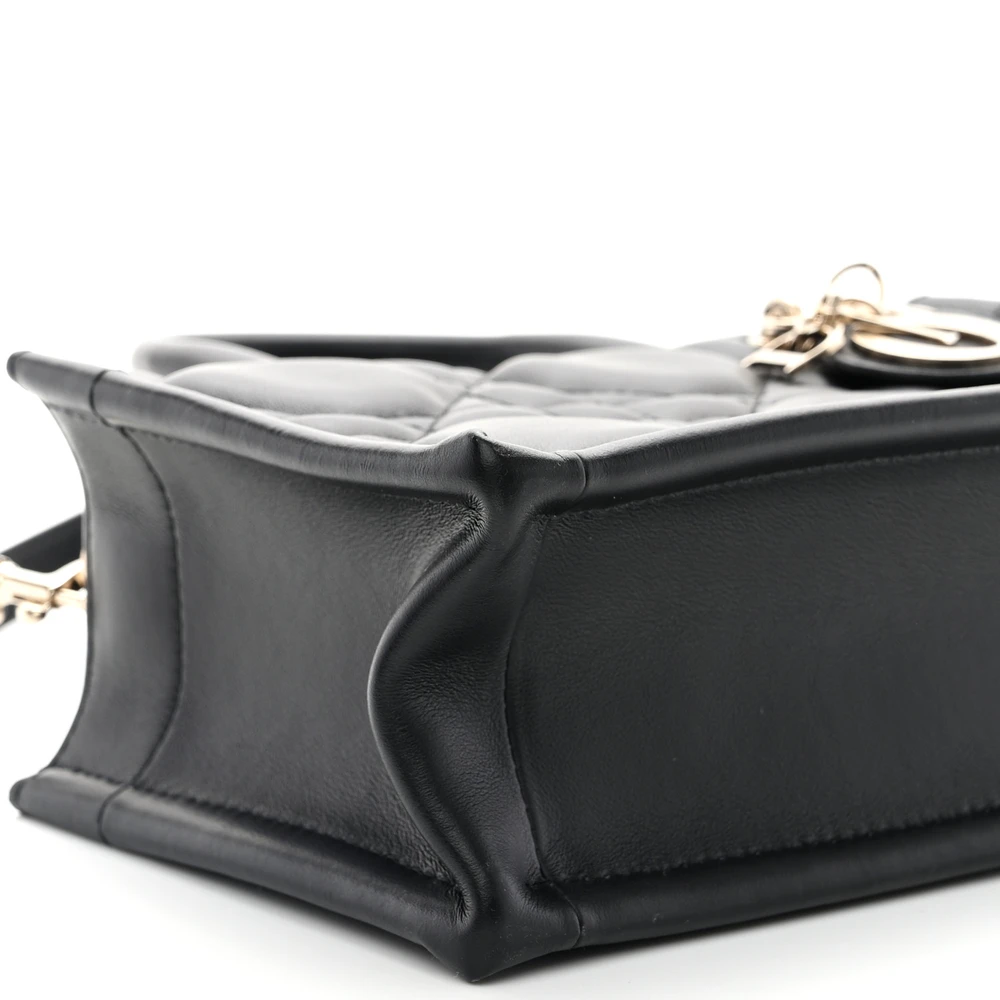 Dior Mini Lady Dior Black Cannage Lambskin Leather Light Gold Hardware