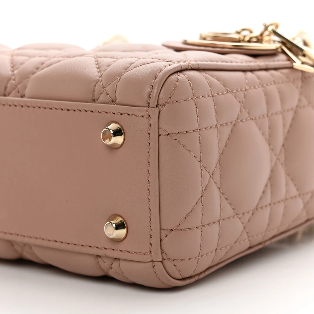 Dior Mini Lady Dior Fard Cannage Lambskin Leather Light Gold Hardware