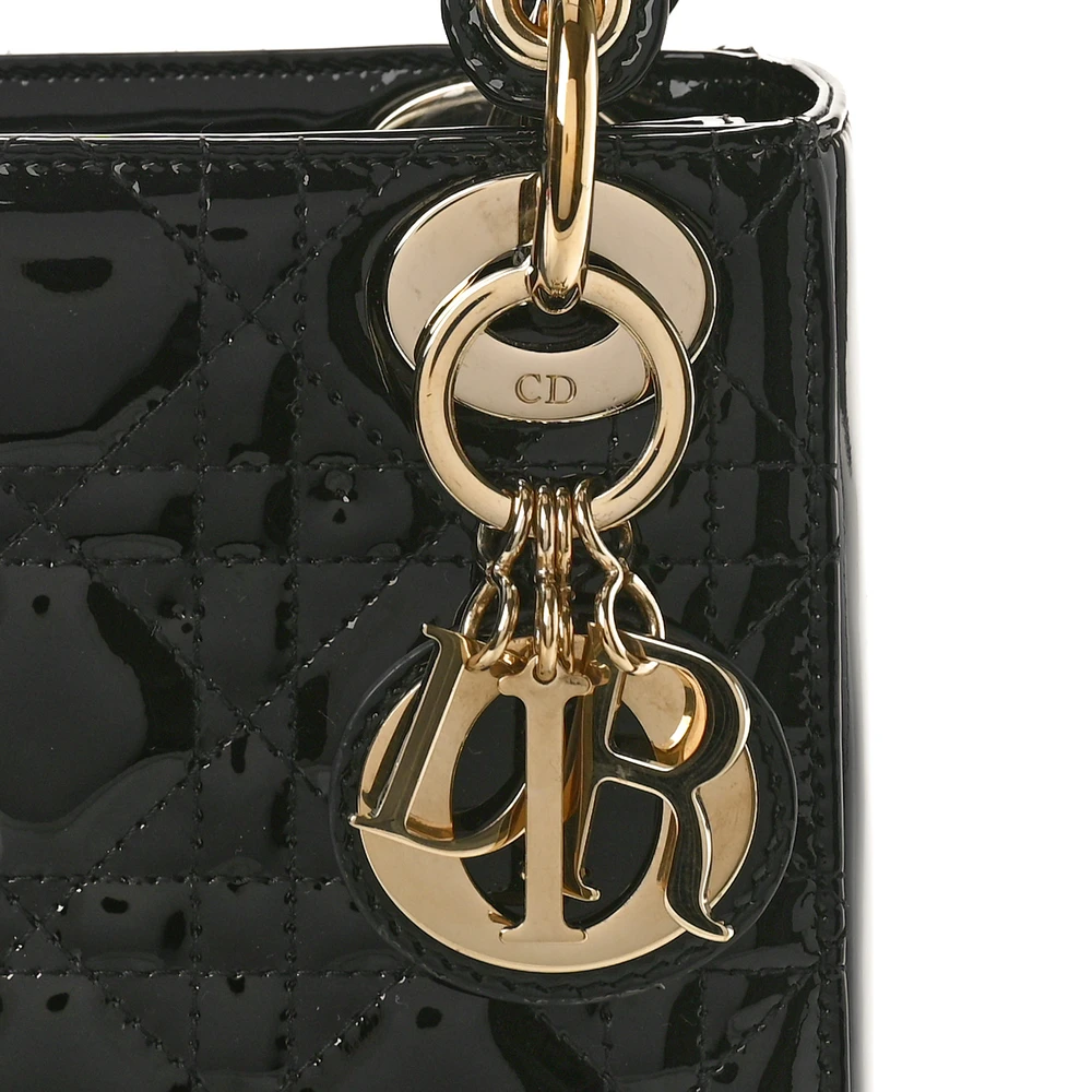 Dior Mini Lady Dior Black Patent Cannage Calfskin Leather Gold Hardware
