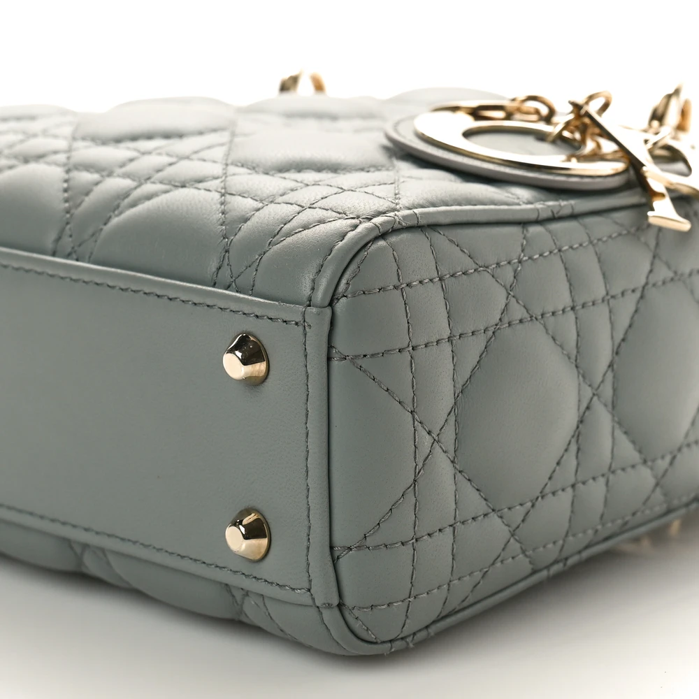 Dior Mini Lady Dior Grey Cannage Lambskin Leather Gold Hardware