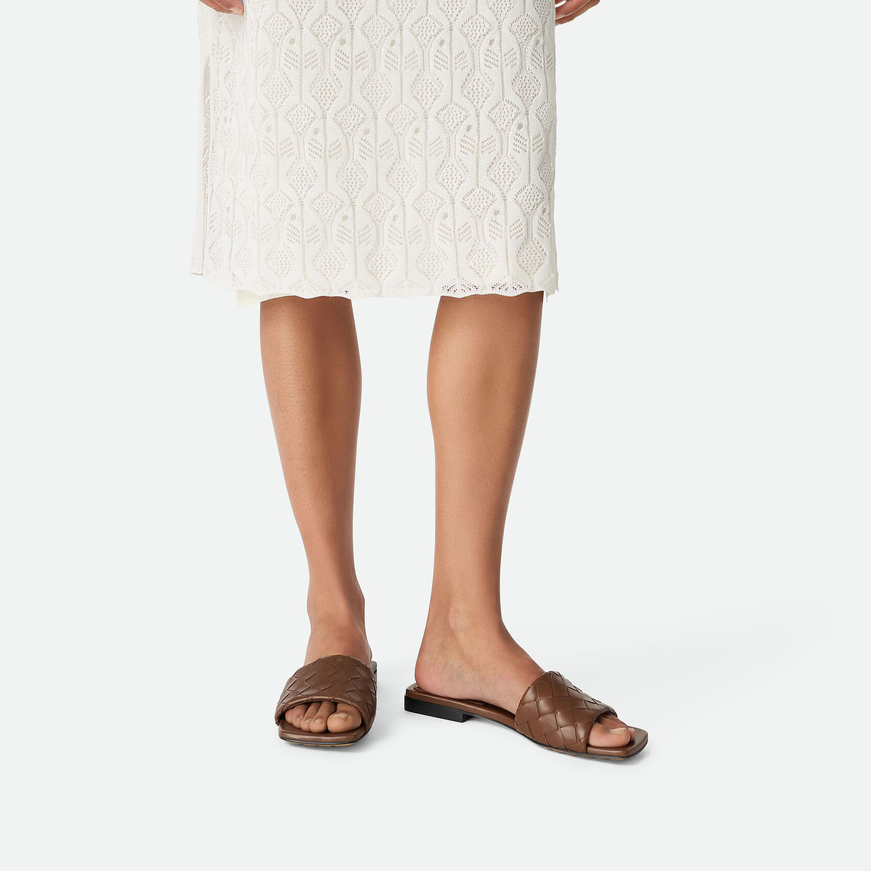 Bottega Veneta Parco Mule In Brown Intrecciato Leather Flat Mule Sandal