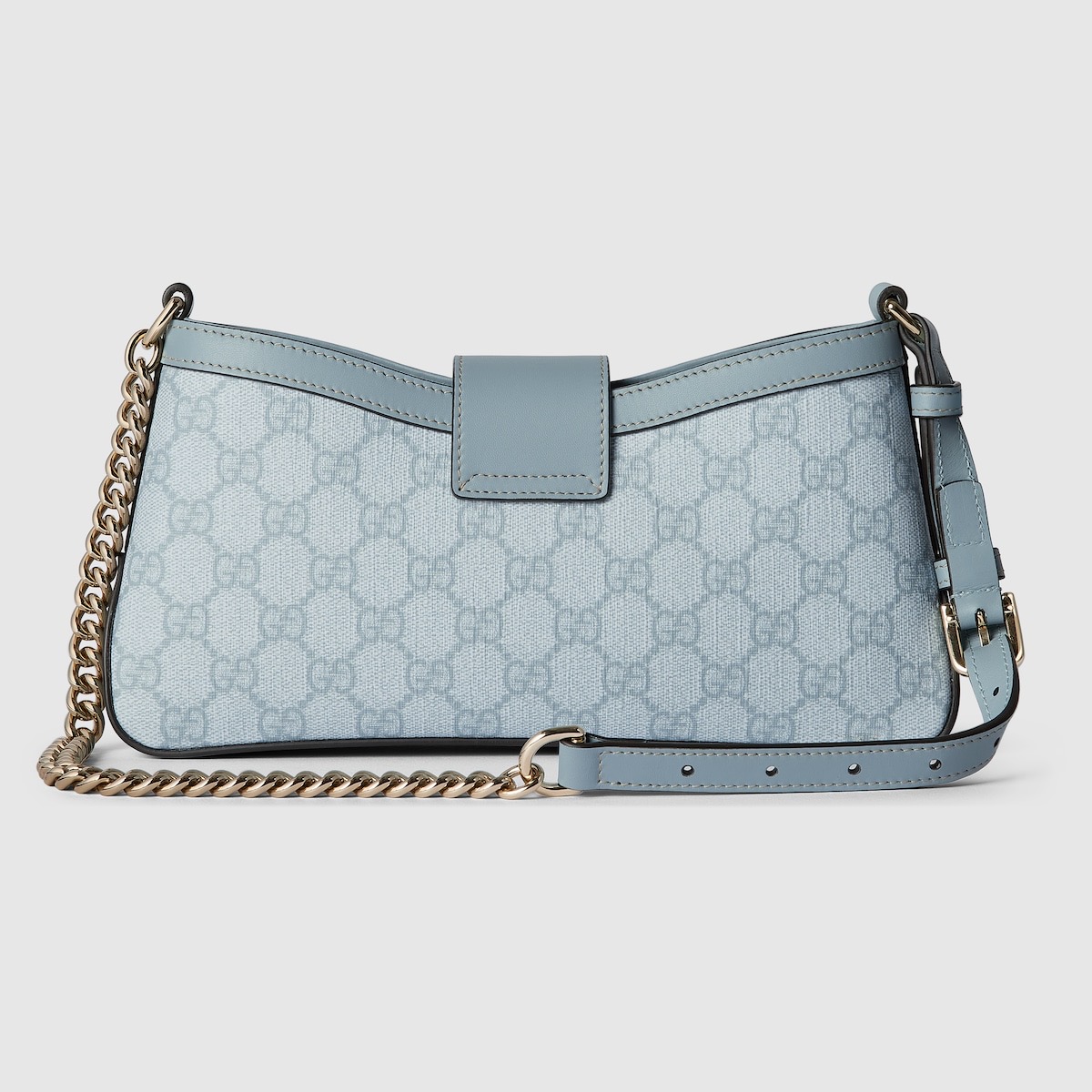 Gucci Large Web Attache Shoulder Bag Beige/Blue GG Supreme Monogram Canvas & Textured Calfskin Leather Silver Hardware