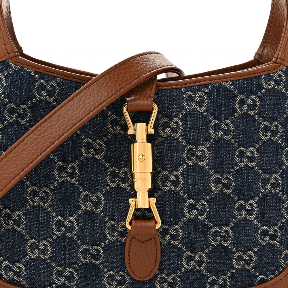 Gucci Jackie 1961 Hobo Blue Tea / Cuir GG Monogram New Denim & Calfskin Leather Gold Hardware